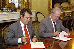 Imagen de la firma del convenio por el que se crea esta Cátedra.(ampliar imagen)