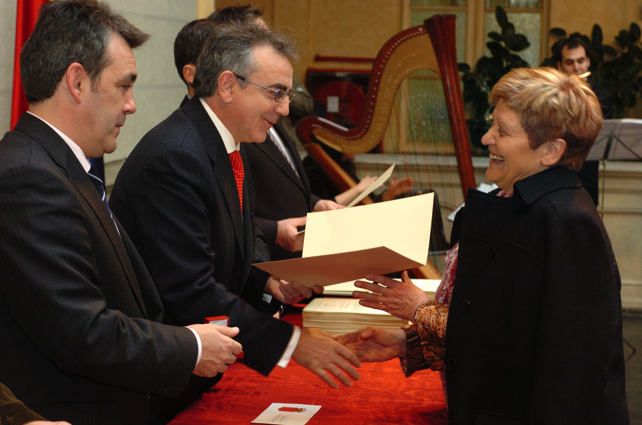 El Presidente Sanz entrega el diploma acreditativo a una jubilada.(ampliar imagen)
