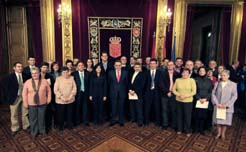 Seguidamente, el Presidente Sanz ha entregado un escudo de Navarra a los representantes de las ONGDs, y a continuación ha pronunciado unas palabras el presidente de la Coordinadora de ONGDs de Navarra, Javier Abad.
