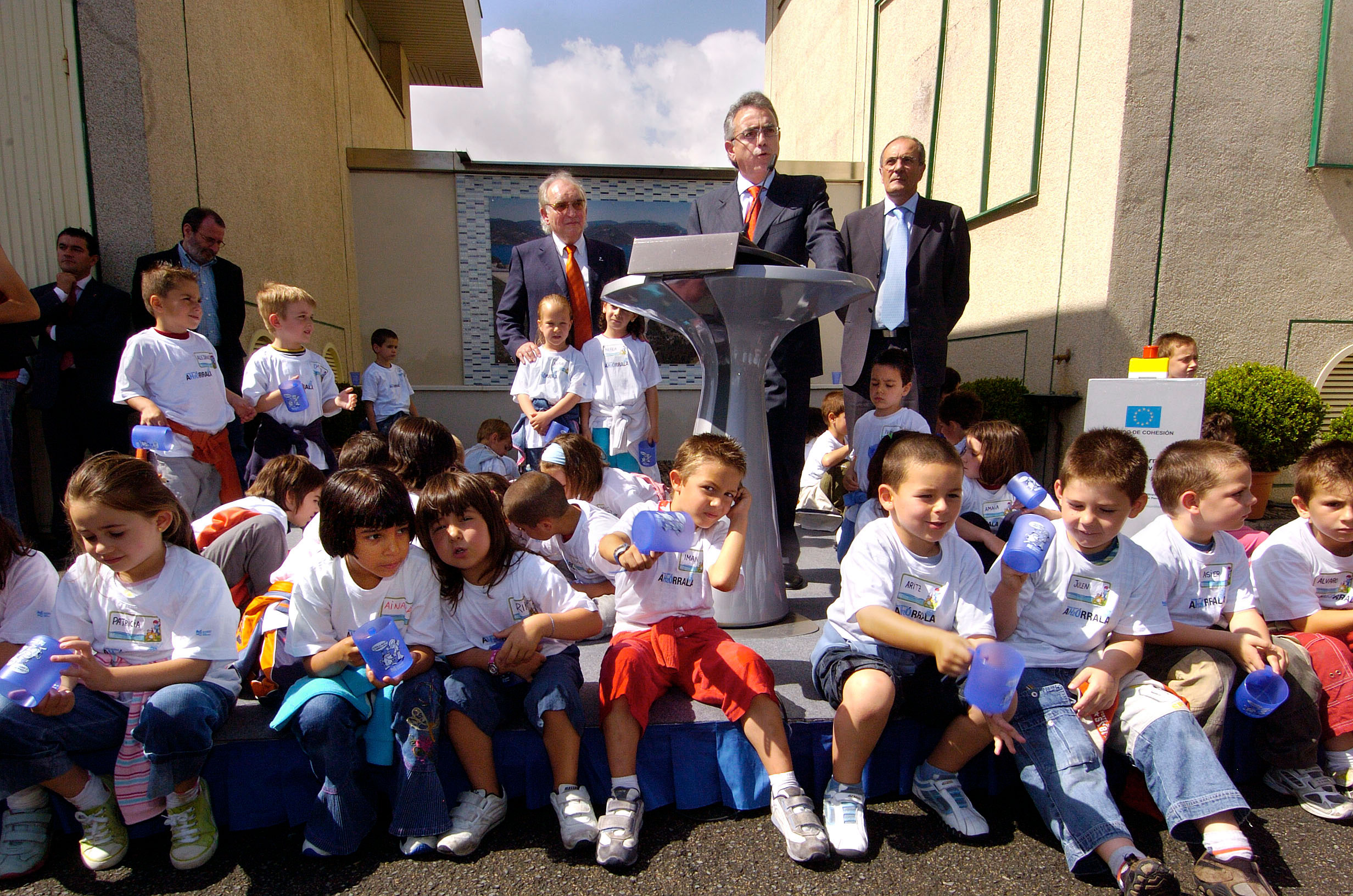 Y a un grupo de niños que estaba presente allí, se ha dirigido en los términos siguientes: "también os quiero decir que cuando seáis mayores, os acordaréis de haber estado hoy aquí, y que cuando abráis el grifo de la dicha o cuando os bañéis en la piscina os acordéis de que el agua hay que cuidarla, que no hay que malgastarla, y que cuidar el agua es cuidar toda nuestra naturaleza".