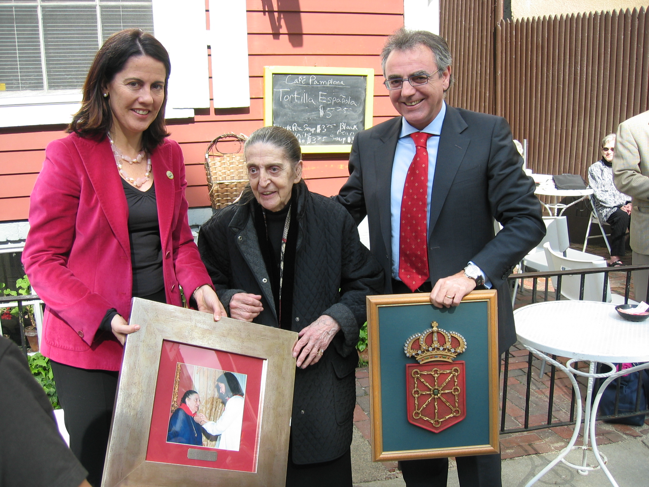 Aprovechando su estancia en Cambridge, sede de la Universidad de Harvard y del M.I.T., el Presidente Sanz y la alcaldesa de Pamplona, Yolanda Barcina, se trasladaron al Café Pamplona para reconocer la labor realizada al frente del mismo por su propietaria, la navarra Josefina Yangüas.