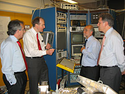 Miguel Sanz, José Javier Armendáriz y Javier Tejada reciben explicaciones dle profesor Henry I. Smith sobre uno de los proyectos de nanotecnología en los que trabaja el MIT de Boston.