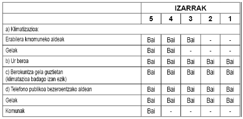 Ostatu establezimenduetako logela guztiek ondoko elementuak izanen dituzte gutxienez: