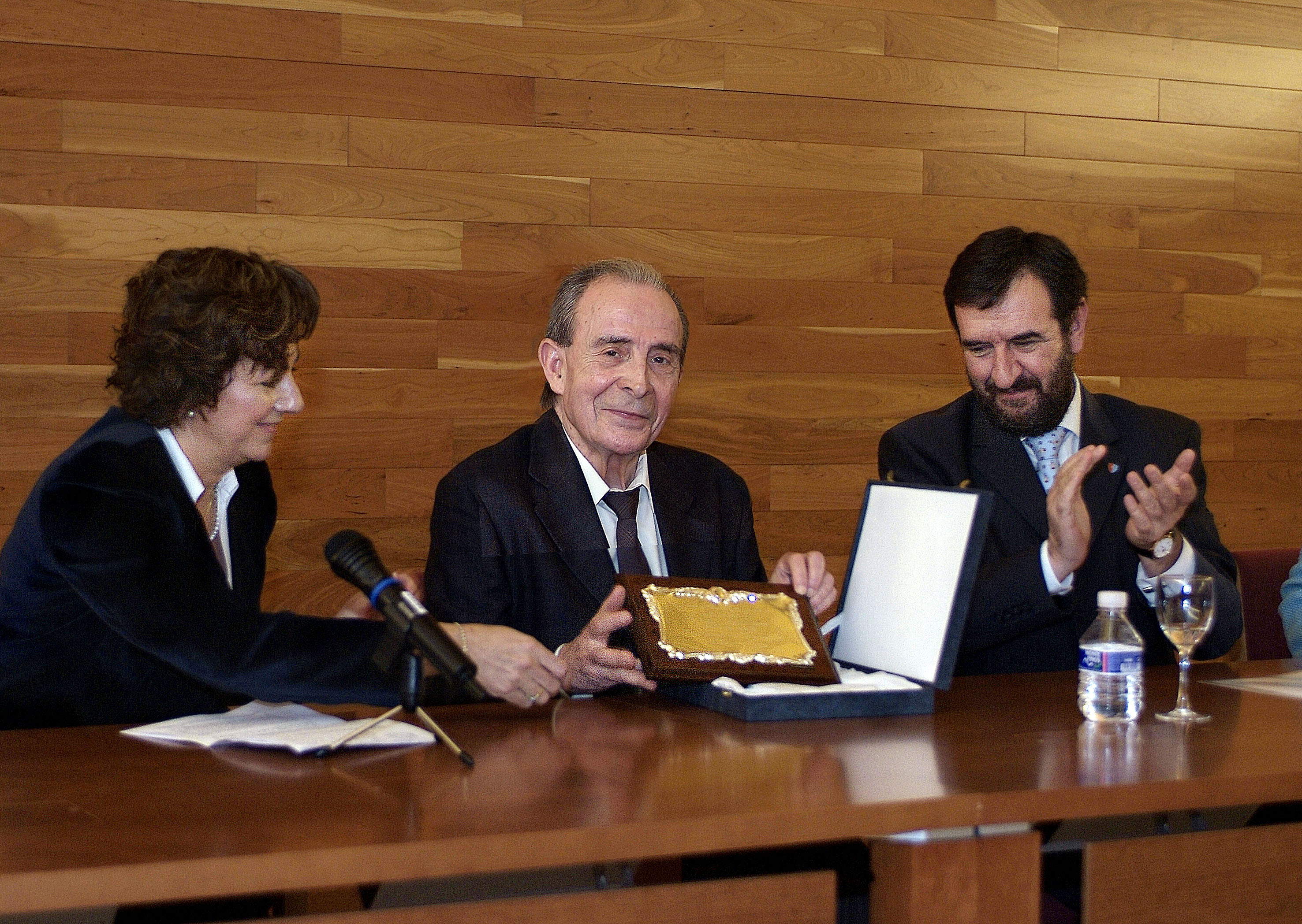 Angel Martín Duque entre el consejero Corpas y Mercedes Galán.(ampliar imagen)