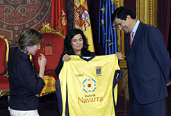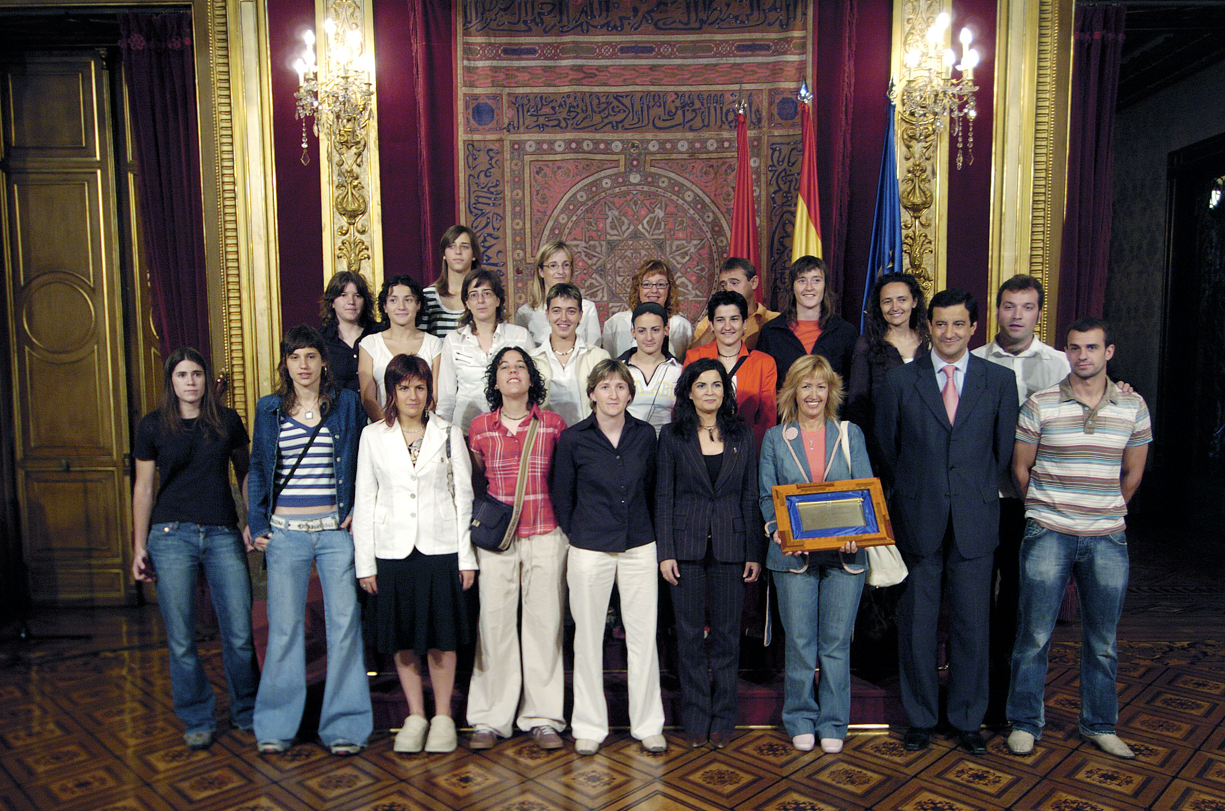 martes, 20 de junio de 2006La consejera de Bienestar Social, Deporte y Juventud, María Isabel García Malo, ha ofrecido esta mañana en el Salón del Trono del Palacio de Navarra, una recepción oficial a las jugadoras y cuadro técnico del equipo femenino de fútbol “Lagunak” de Barañáin, recientemente proclamadas subcampeonas de la Copa de Su Majestad la Reina.