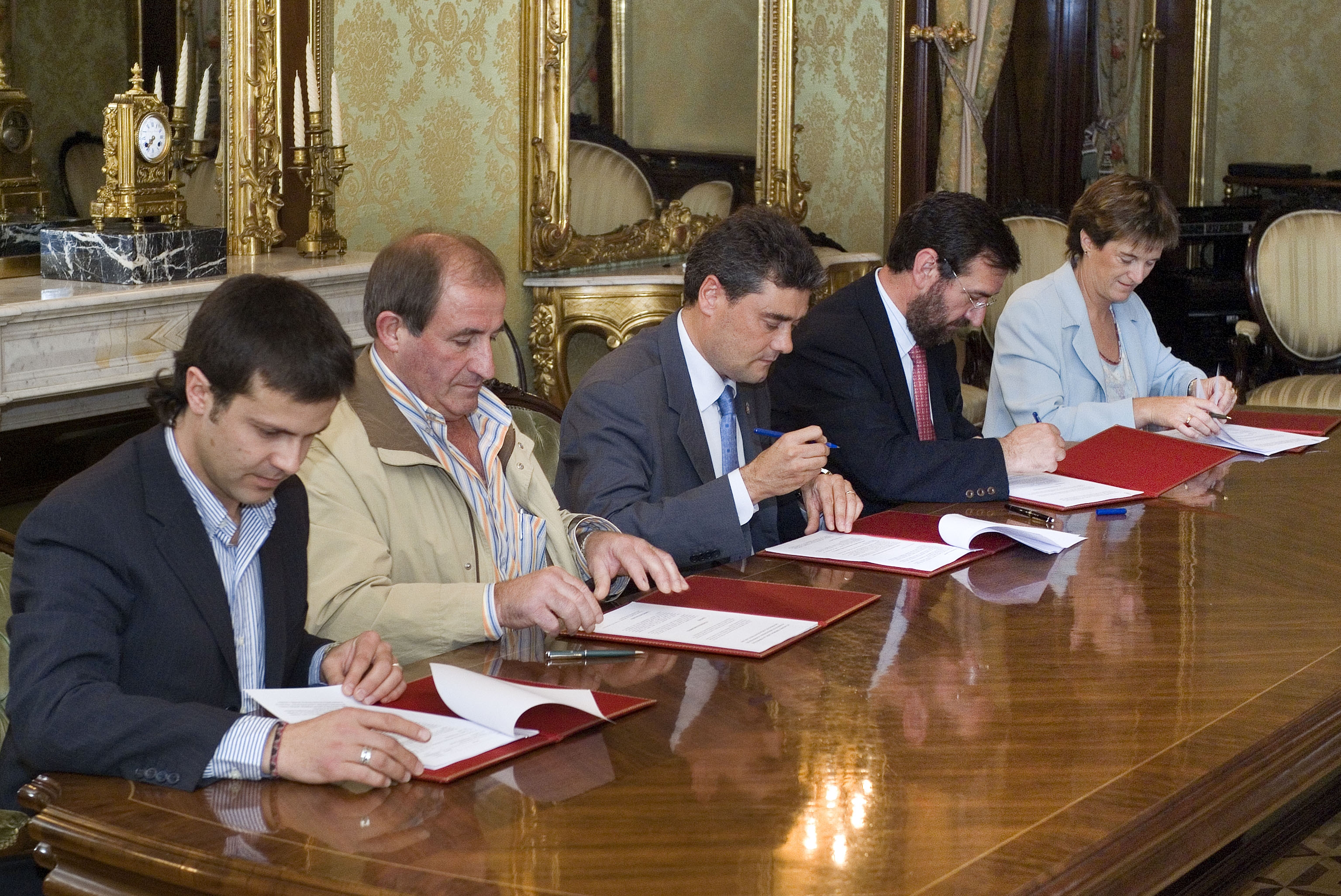 Firma del acuerdo en el Palacio de Navarra.(ampliar imagen)