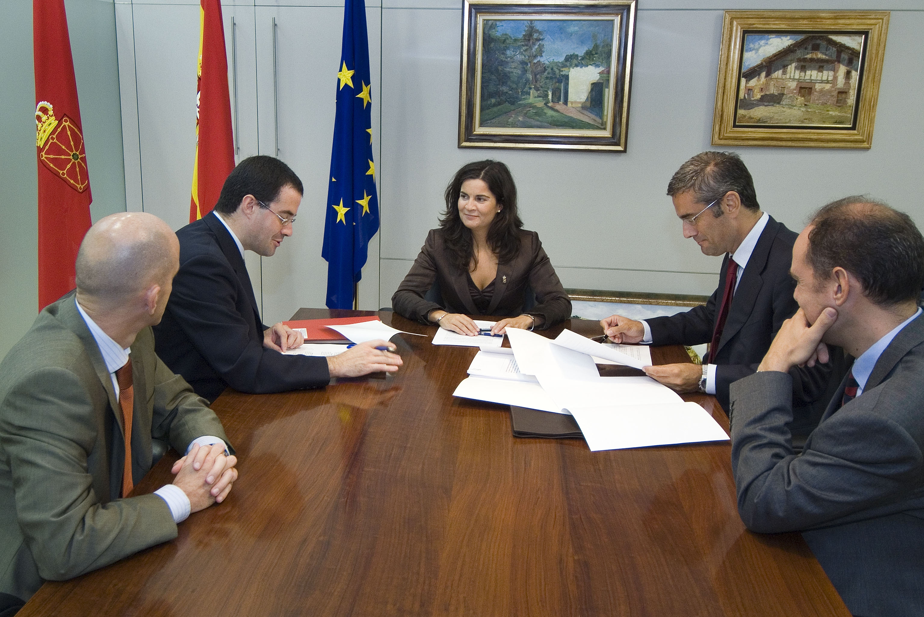 Firma del contrato. De izda a dcha: Iribas, la consejera García Malo y Asensio.(ampliar imagen)