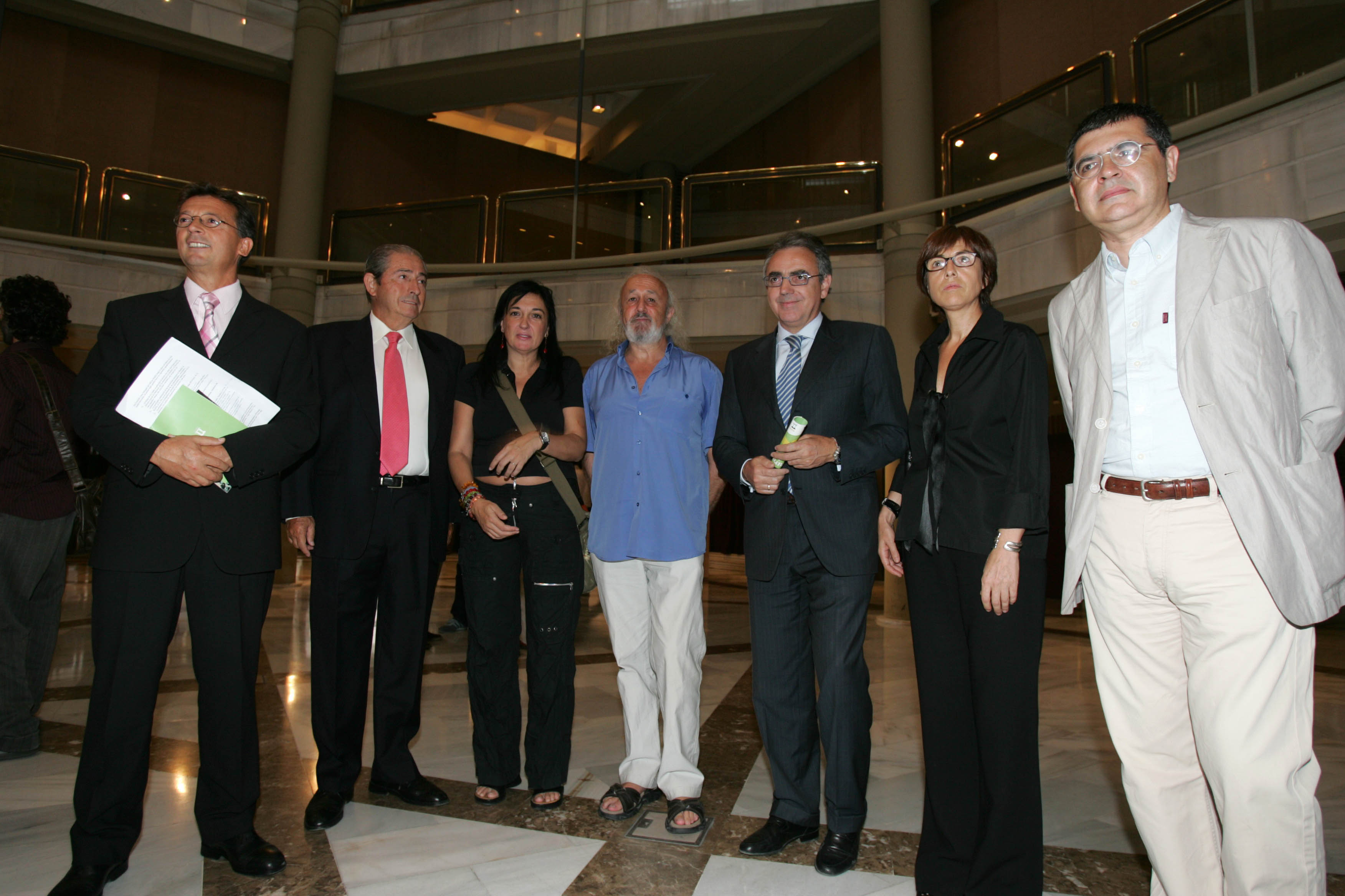 De izda a derecha, Salvador Estébanez, delegado del Gobierno en Madrid;Juan José Echeverría, director general de Patrimonio del Ayto de Madrid; Puy Oria, Montxo Armendáriz, el presidente Miguel Sanz, Julia Juániz y Manuel Hidalgo.