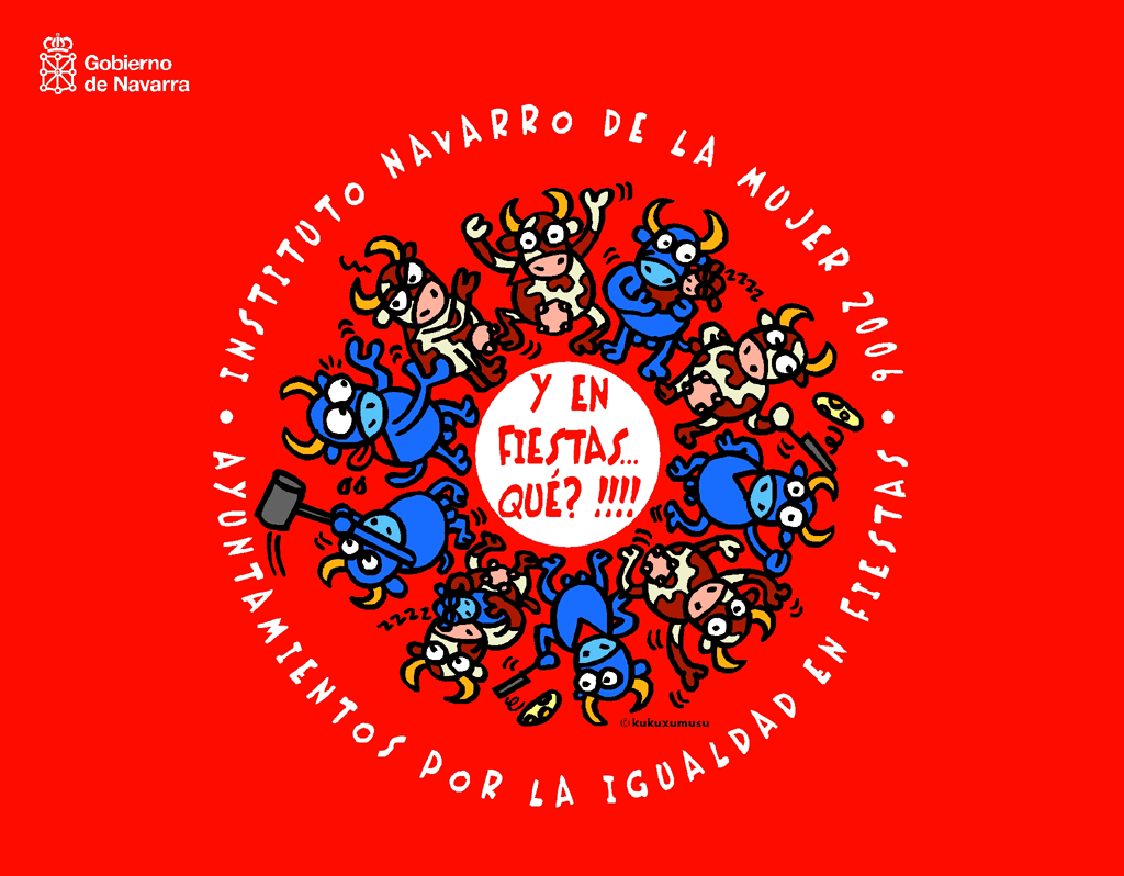 miércoles, 21 de junio de 2006El Gobierno de Navarra, a través del Instituto Navarro de la Mujer, ha realizado por segundo año consecutivo, la campaña "Y en fiestas ¿qué?" dirigida a sensibilizar y promover la igualdad de trato y oportunidades durantes las fiestas patronales que se celebran en la Comunidad Foral a lo largo del verano.