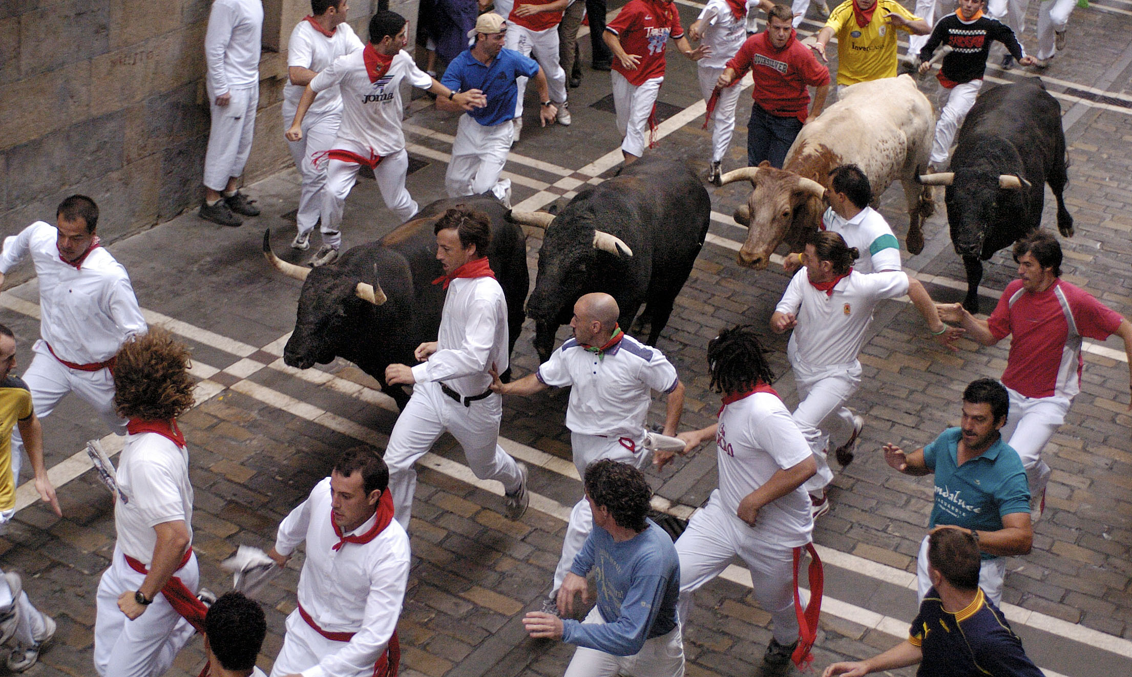 Un herido por asta de toro en el séptimo encierro de las fiestas de San Fermín
