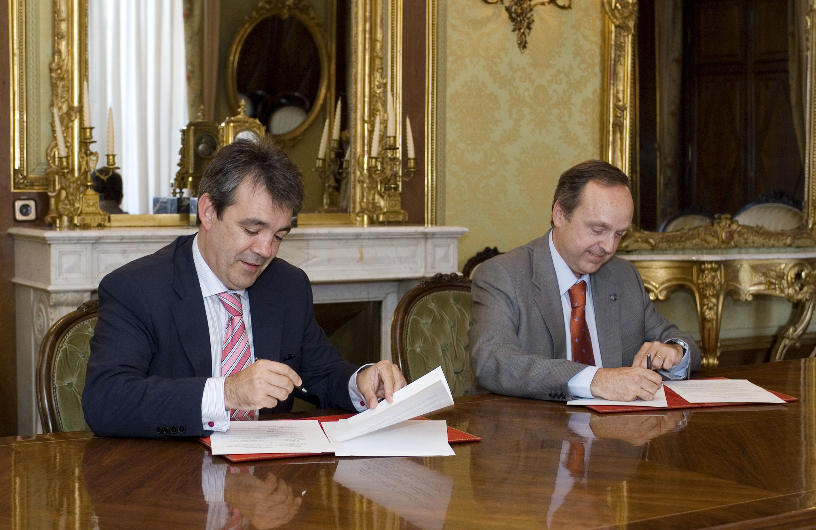 Imagen de la firma entre el consejero Caballero y Alfredo Irujo