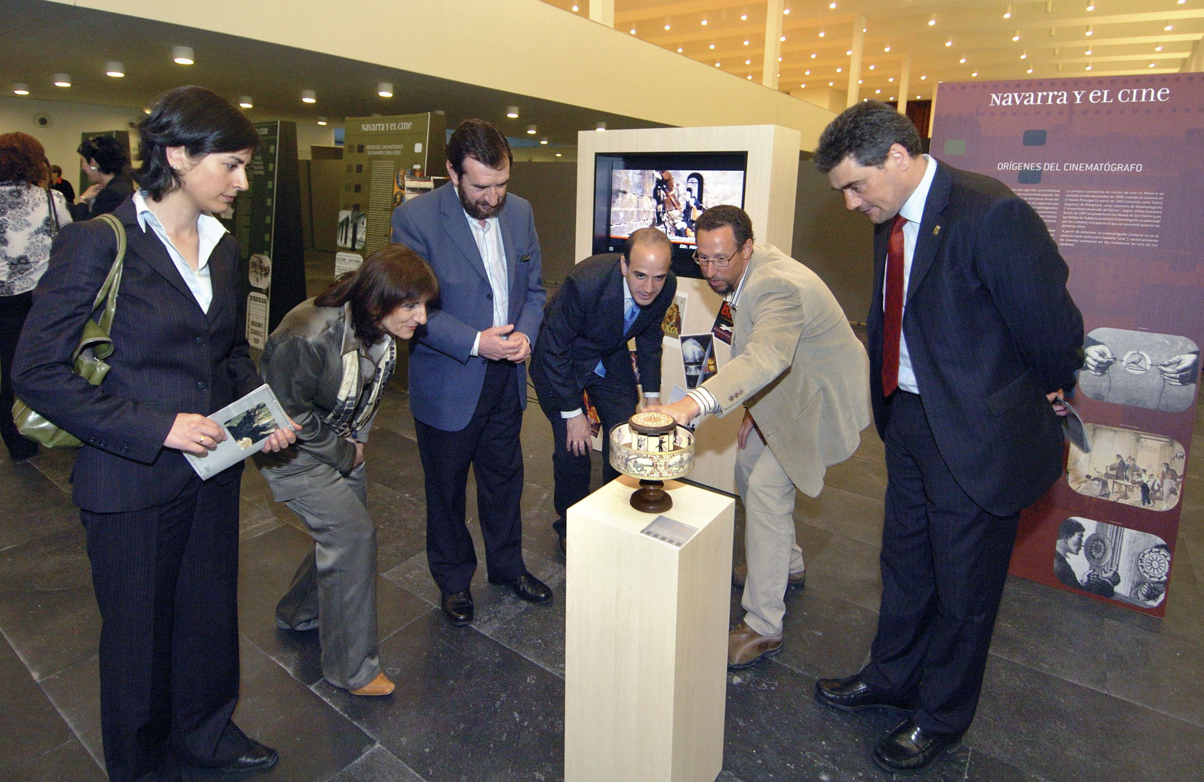 Estuvieron presentes también, la representante de la Fundación Caja Navarra, Iranzu Valdés, los presidentes de los centros regionales de Zaragoza, Logroño, Vitoria y Santander, coordinadores culturales, participantes en la elaboración de la exposición y otras personas del ámbito cinematográfico. Como expresó el consejero Catalán en su discurso, "A través del cine, los países y los ciudadanos del mundo podemos conocernos mejor, podemos captar las peculiaridades sociales de cada pueblo y compartir esa riqueza fructífera que constituye la cultura universal. Además, el cine, por cuanto tiene de aportación de información sobre la realidad del género humano, nos hace profundizar más en el conocimiento de esa realidad global que es el mundo de hoy."