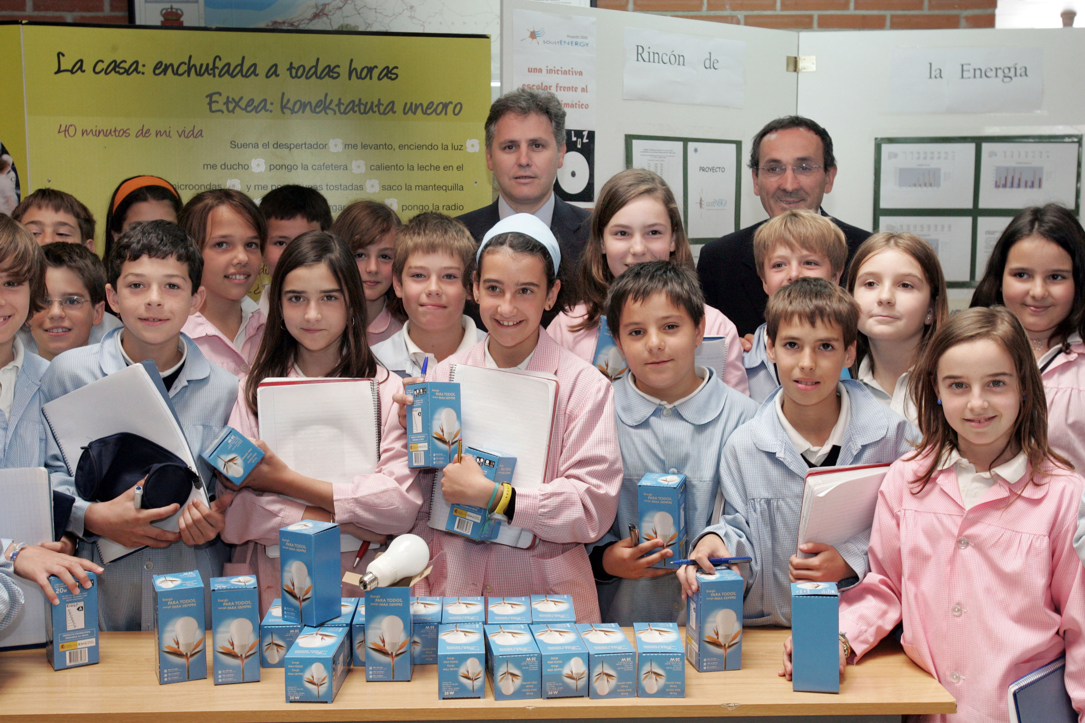 El consejero Armendáriz ha entrega bombillas de bajo consumo a los alumnos de San Cernin.