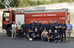 Imagen del 2º contingente de bomberos navarros que partió ayer hacia Galicia.(ampliar imagen)