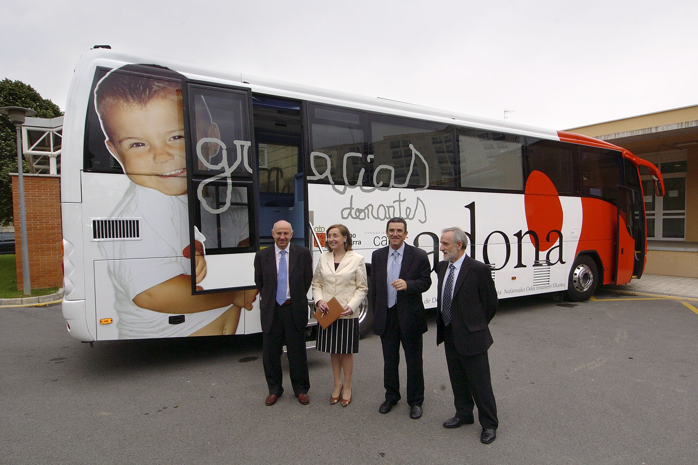 De izda. a dcha., Garde, Kutz, Boneta e Iráizoz junto a la nueva autohemoteca.(ampliar imagen)