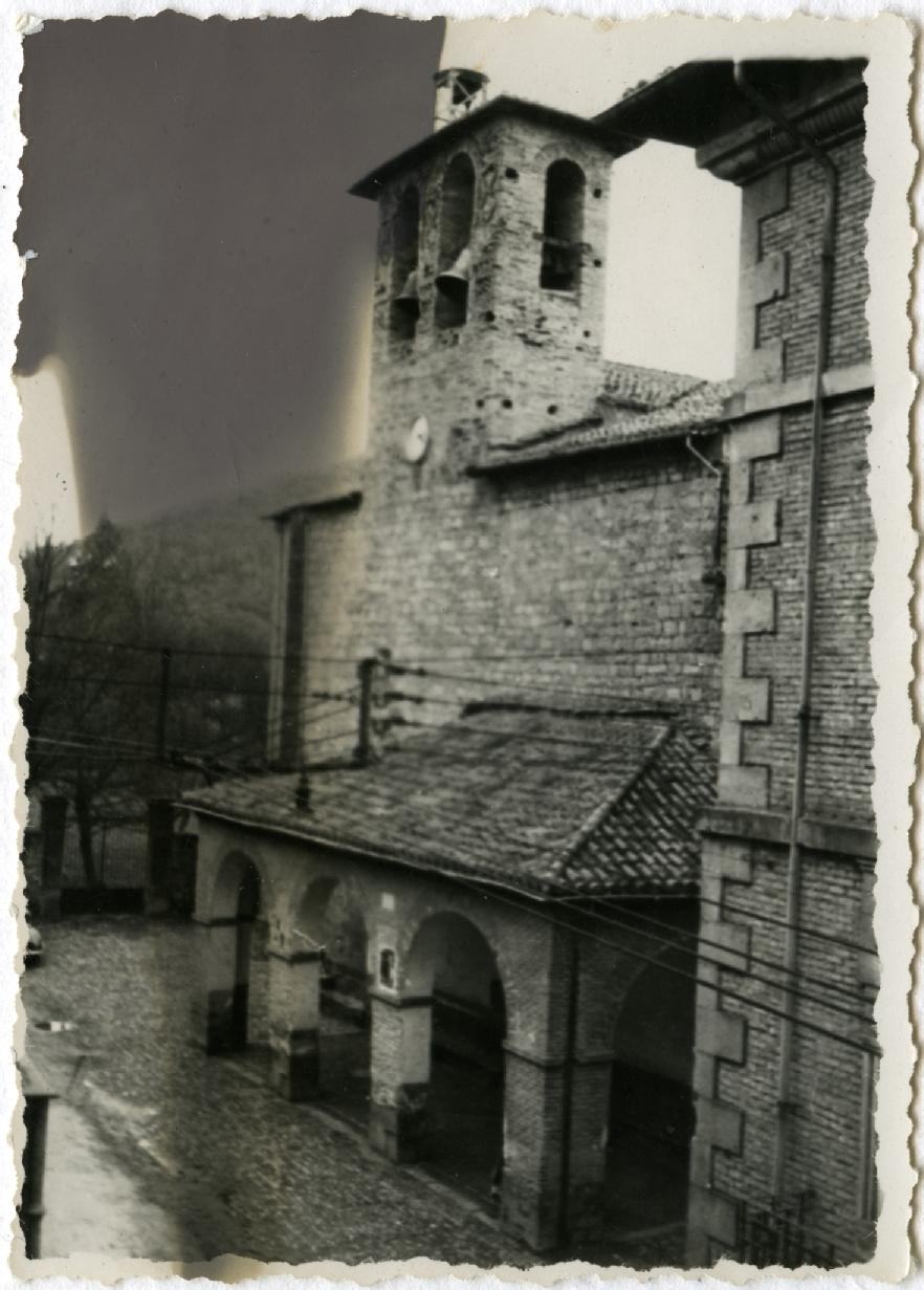 • Contenido: Vista de la fachada y la torre de la antigua iglesia parroquial de San Andrés en la localidad de Villava.