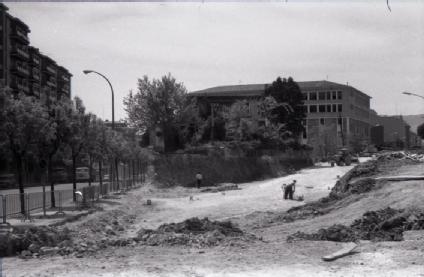 Obras de construcción de la plaza de los Fueros de Pamplona. Avenida de Zaragoza y Abejeras.