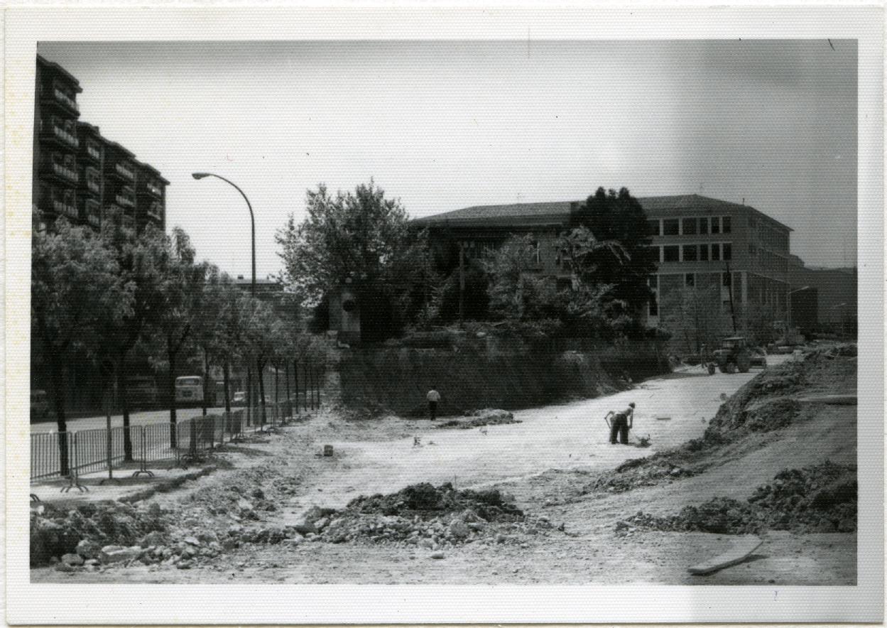Obras de construcción de la plaza de los Fueros de Pamplona. Avenida de Zaragoza y Abejeras.