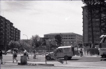 Obras de construcción de la plaza de los Fueros de Pamplona. Avenida de Zaragoza y Abejeras.