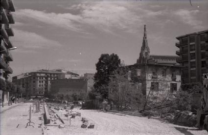 Obras de construcción de la plaza de los Fueros de Pamplona. Avenida de Zaragoza.
