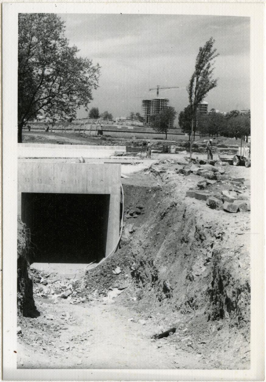 Obras de construcción de la plaza de los Fueros de Pamplona. Paso subterráneo.