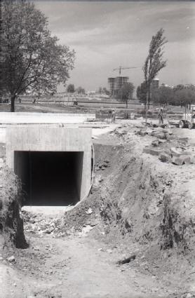 Obras de construcción de la plaza de los Fueros de Pamplona. Paso subterráneo.
