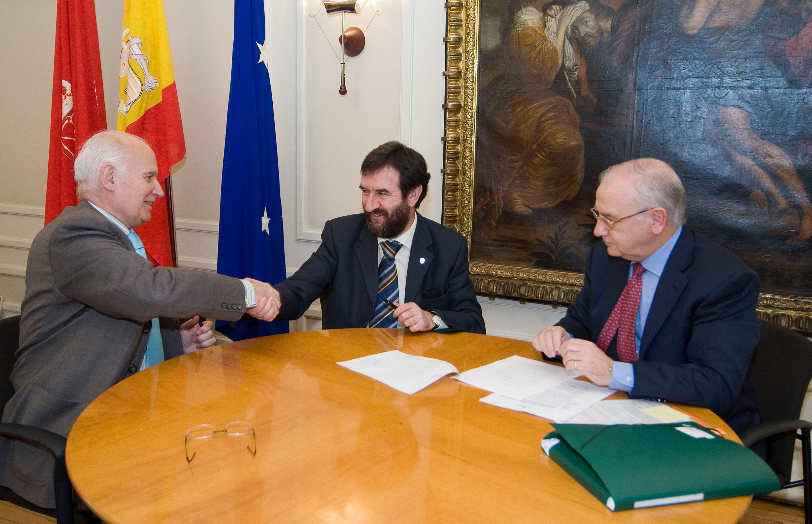 Corpas kontseilariak eta Emilio Gómezek elkar zoriondu dute eskritura sinatu ondoren.(irudia handitu)