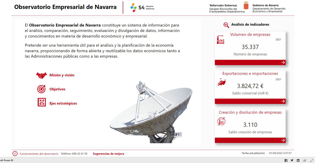 Los objetivos marcados por el observatorio son promover el análisis de datos como la base de la planificación y la toma de decisiones, tanto para entidades públicas como privadas; lograr una herramienta que posibilite el seguimiento, en tiempo real, de la evolución de la economía y las empresas navarras; analizar el impacto de la puesta en marcha de las distintas políticas públicas derivadas de los programas de la s4 y Next Generation; impulsar la cultura analítica y la explotación de datos en materia económica y empresarial y promover la transparencia de los datos económico-empresariales de Navarra.