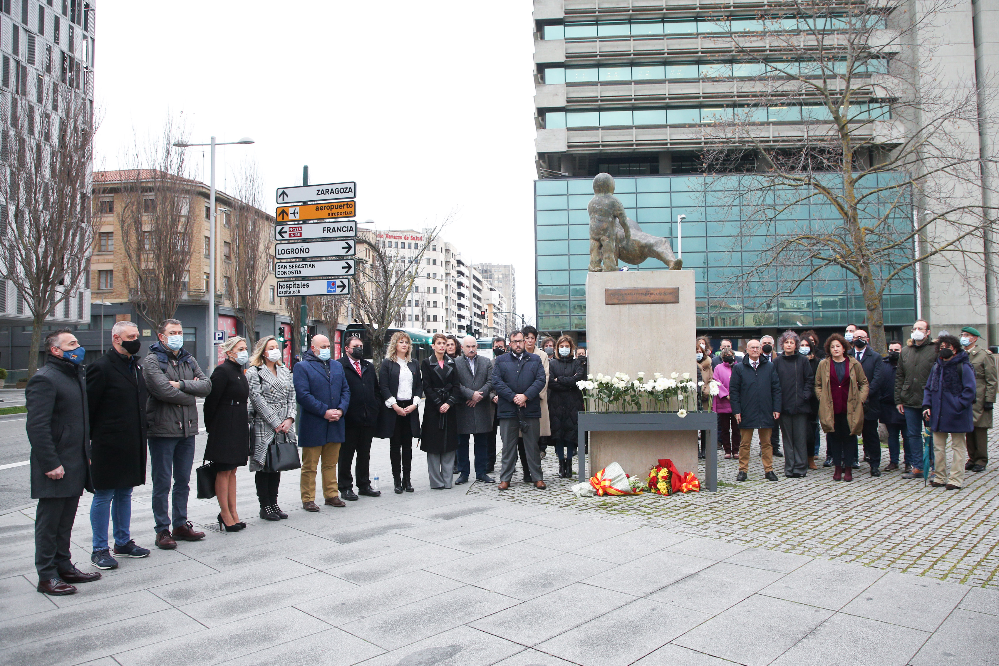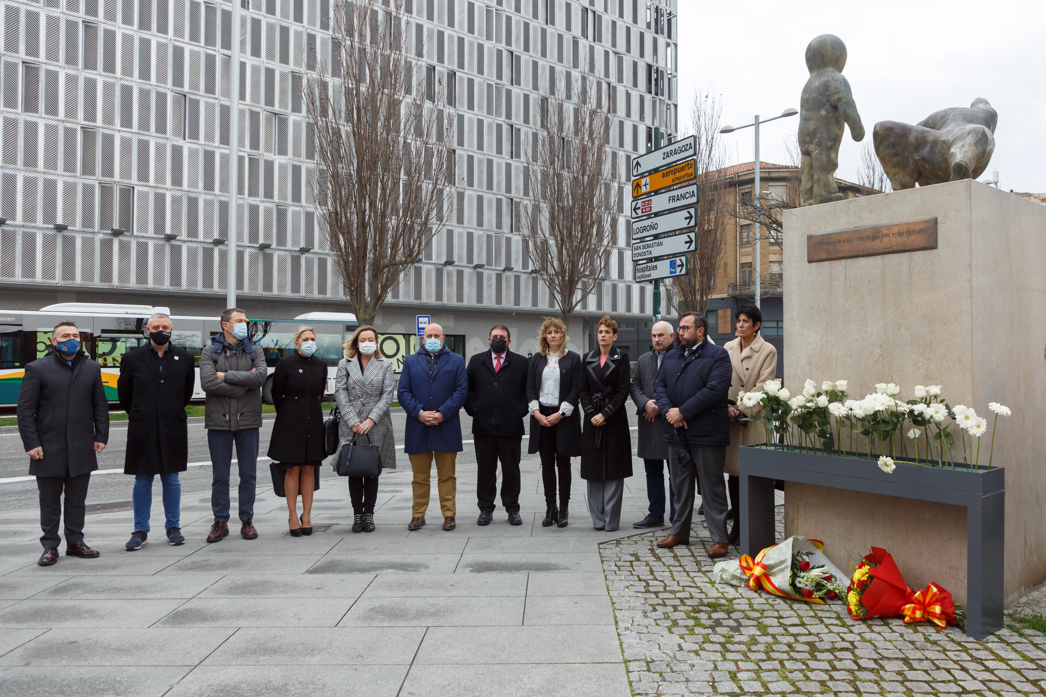La Presidenta Chivite ha encabezado una ofrenda floral, depositando una gerbera blanca junto al monumento en recuerdo de todas las víctimas. A ella se han sumado el resto de asistentes, que han colocado varias decenas de flores en homenaje a las víctimas.