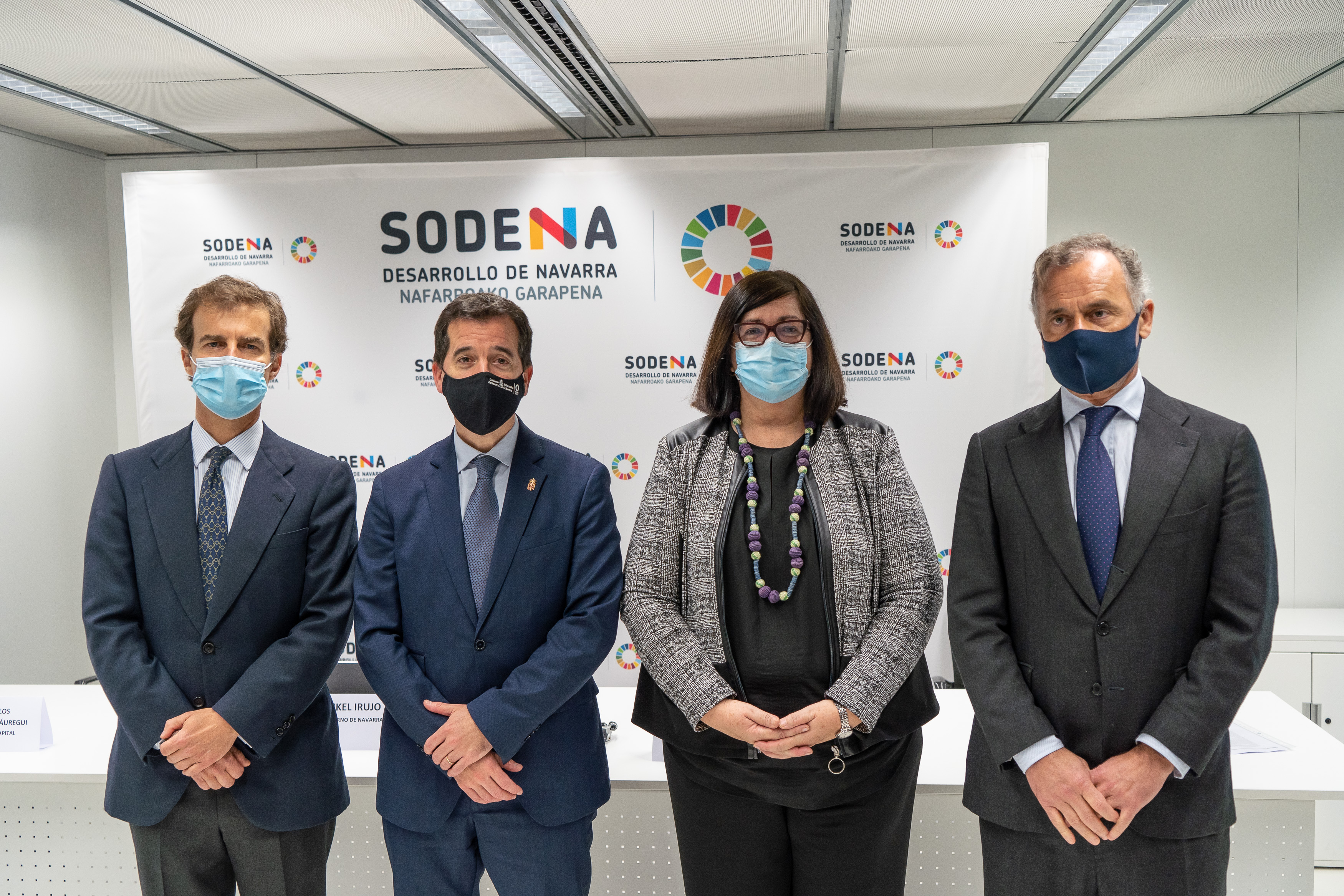 El consejero de Desarrollo Económico y Empresarial del Gobierno de Navarra y presidente de Sodena, Mikel Irujo, ha presentado este viernes, junto a la directora de Sodena, Pilar Irigoien y los representantes de Nazca Capital, Carlos Pérez de Jáuregui, y de Stellum, Pablo Baroja, dos ‘Fondos Arraigo’ que dispondrán de un mínimo de 30 millones de euros para anclar y favorecer el crecimiento del tejido empresarial navarro.