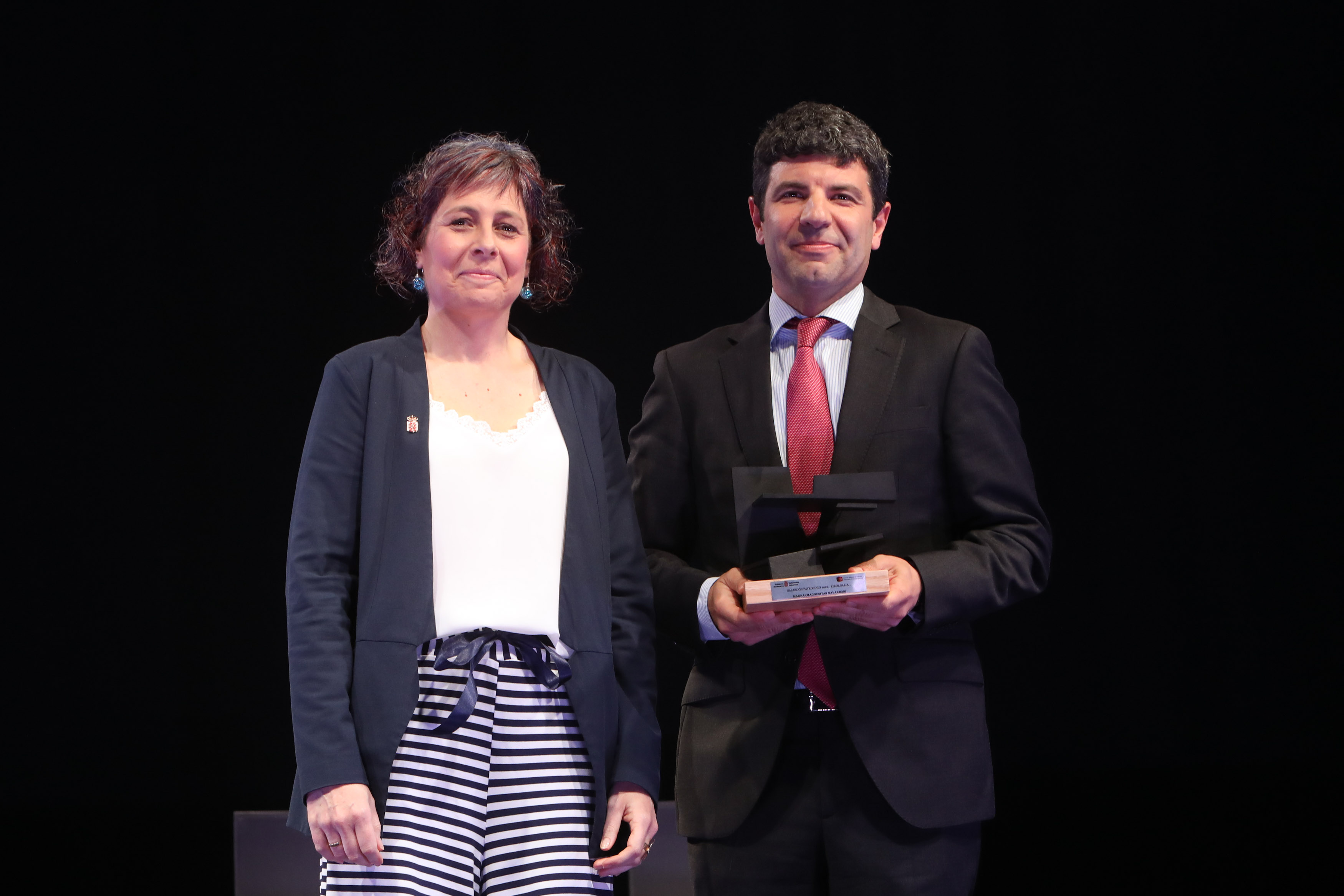 La consejera Esnaola junto al representante de la empresa premiada, Magnesitas Navarra.  Descargar imagen Ver galería de imágenes