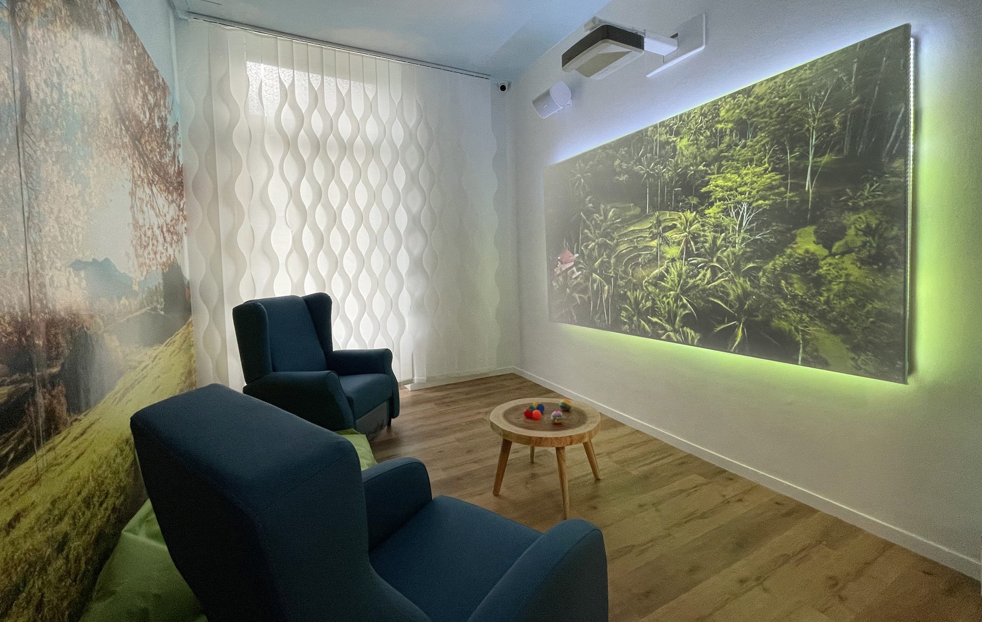 Para su desarrollo, se han transformado dos habitaciones convencionales en espacios confortables, dotándolas de una ambientación, sonorización y acomodación que favorezcan la relajación y la tranquilidad, ayudando así a la persona en su autocontrol y en el manejo de las posibles situaciones de ansiedad.