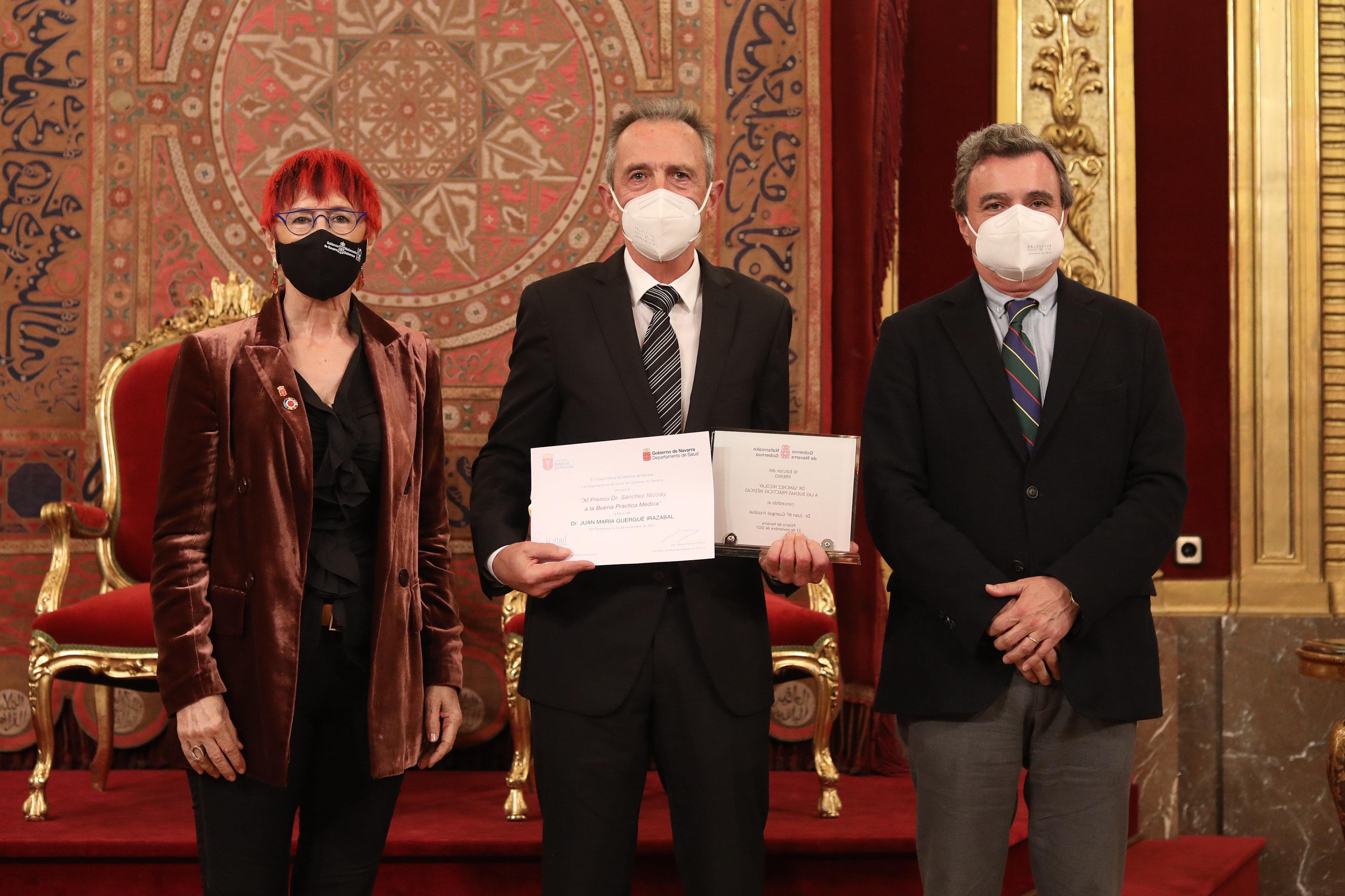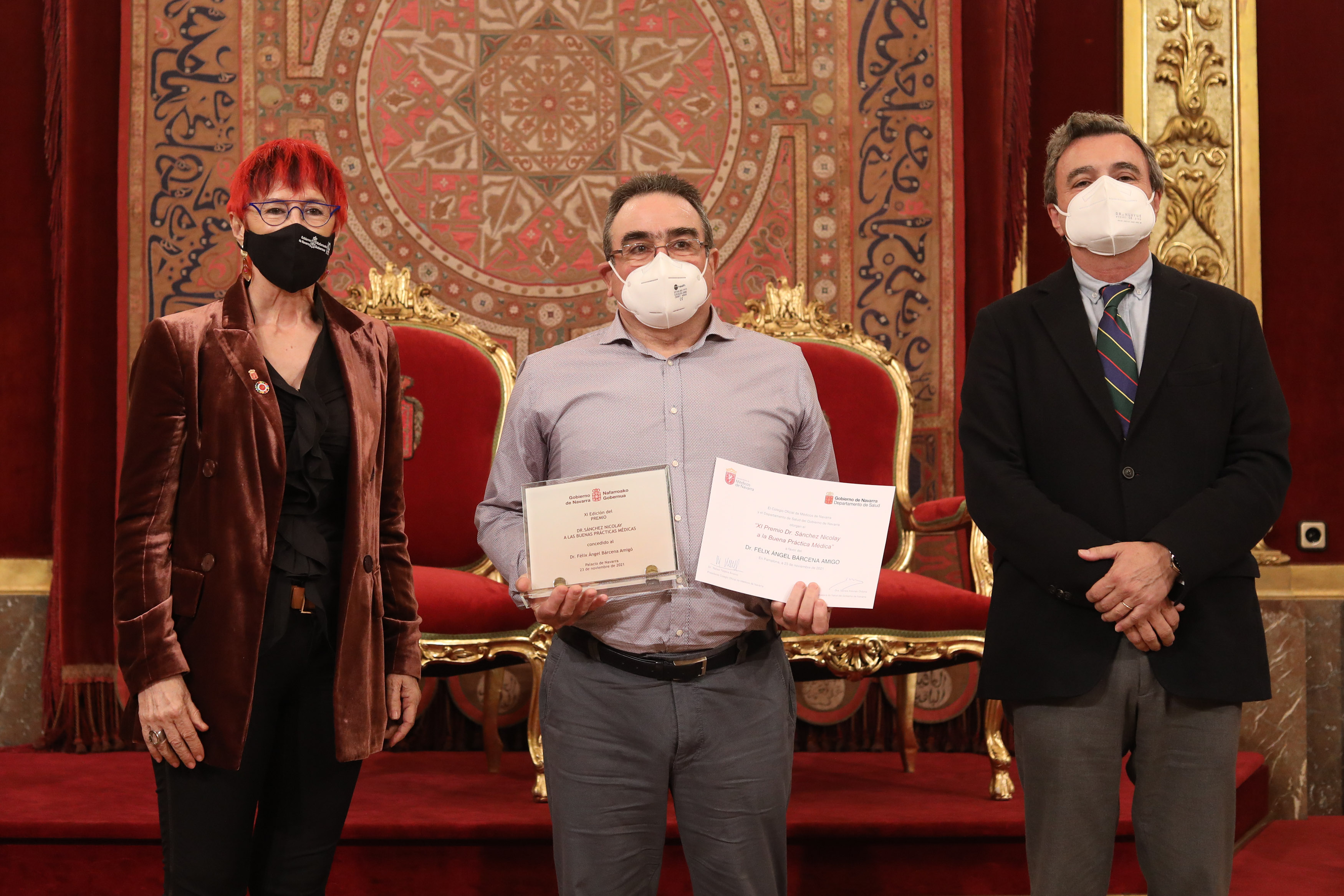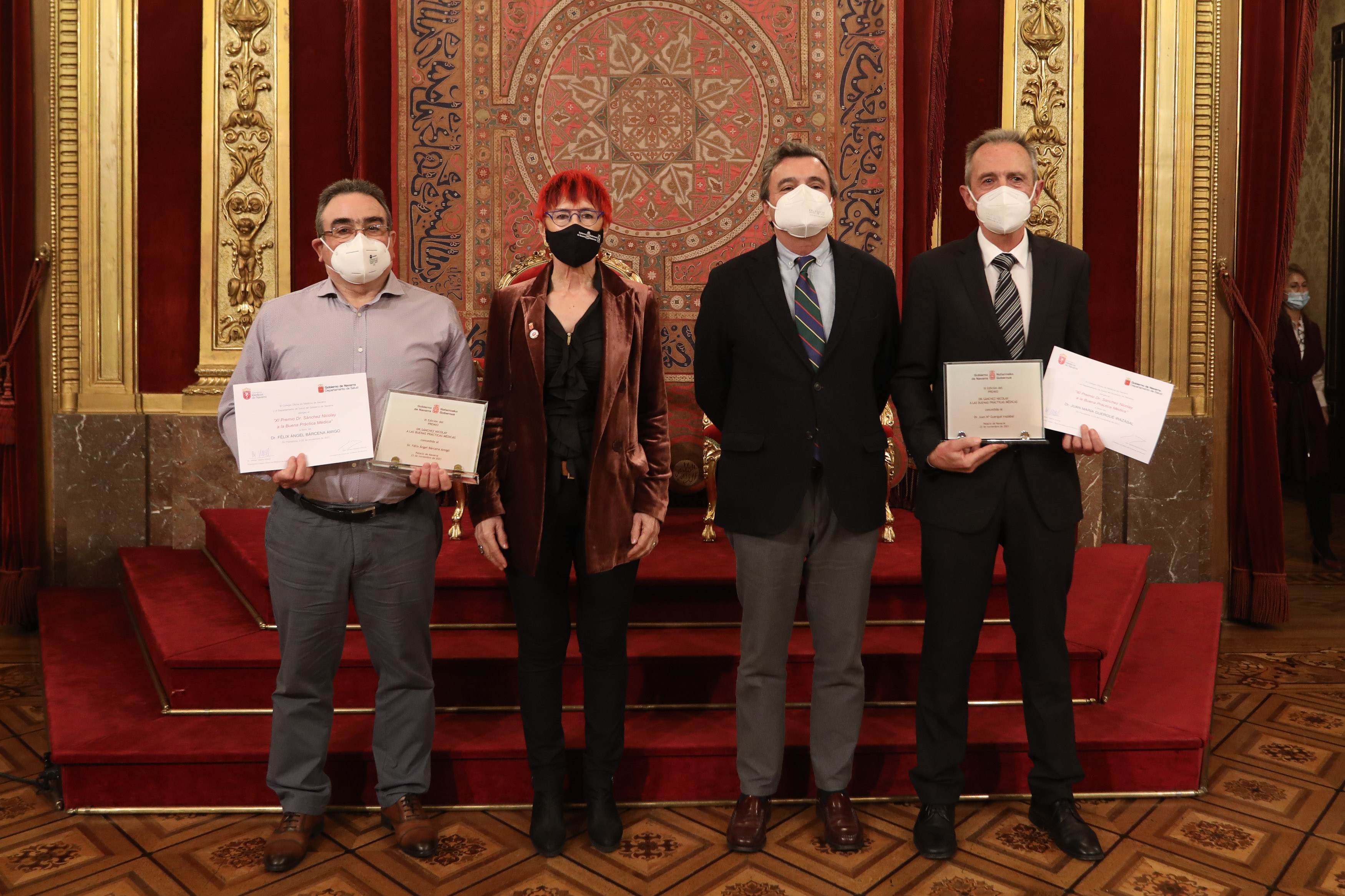 La consejera de Salud, Santos Induráin, ha hecho entrega esta tarde del Premio Sánchez Nicolay a las Buenas Prácticas Médicas, que por primera vez se entrega a dos profesionales: al Dr. Félix Bárcena Amigo, médico de Atención Primaria, que durante 35 años ejercicio su labor en el Centro de Salud de Barañain, y en el ámbito docente, ejerció una gran labor como tutor de residentes; y al Dr. Juan Mª Guergué Irazábal, médico intensivista, impulsó la integración de los servicios de Medicina Intensiva con la creación de la nueva UCI del entonces Hospital de Navarra, en el año 1982, y en 2017 la del Hospital Reina Sofía de Tudela, además dedicó gran parte de su vida a la docencia y a formación, y participó en el Comité Asesor de Decisiones Éticas, que se creó durante la pandemia por el Covid-19.