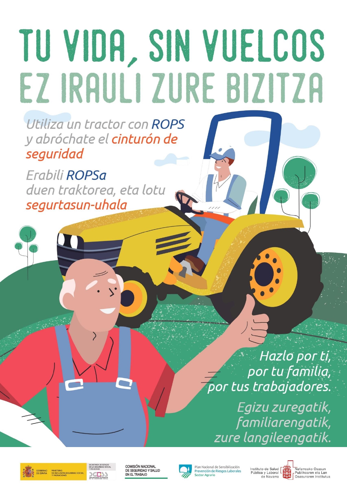 Tu vida sin vuelcos/ Ez irauli zure bizitza es la primera medida puesta en marcha en el marco del Plan Nacional de Sensibilización en Prevención de Riesgos Laborales en el Sector Agrario, una iniciativa diseñada por la Comisión Nacional de Seguridad y Salud en el Trabajo (CNSST), de la que forma parte el ISPLN, con la que se pretende mejorar las condiciones de seguridad en los trabajos agrícolas y ganaderos.