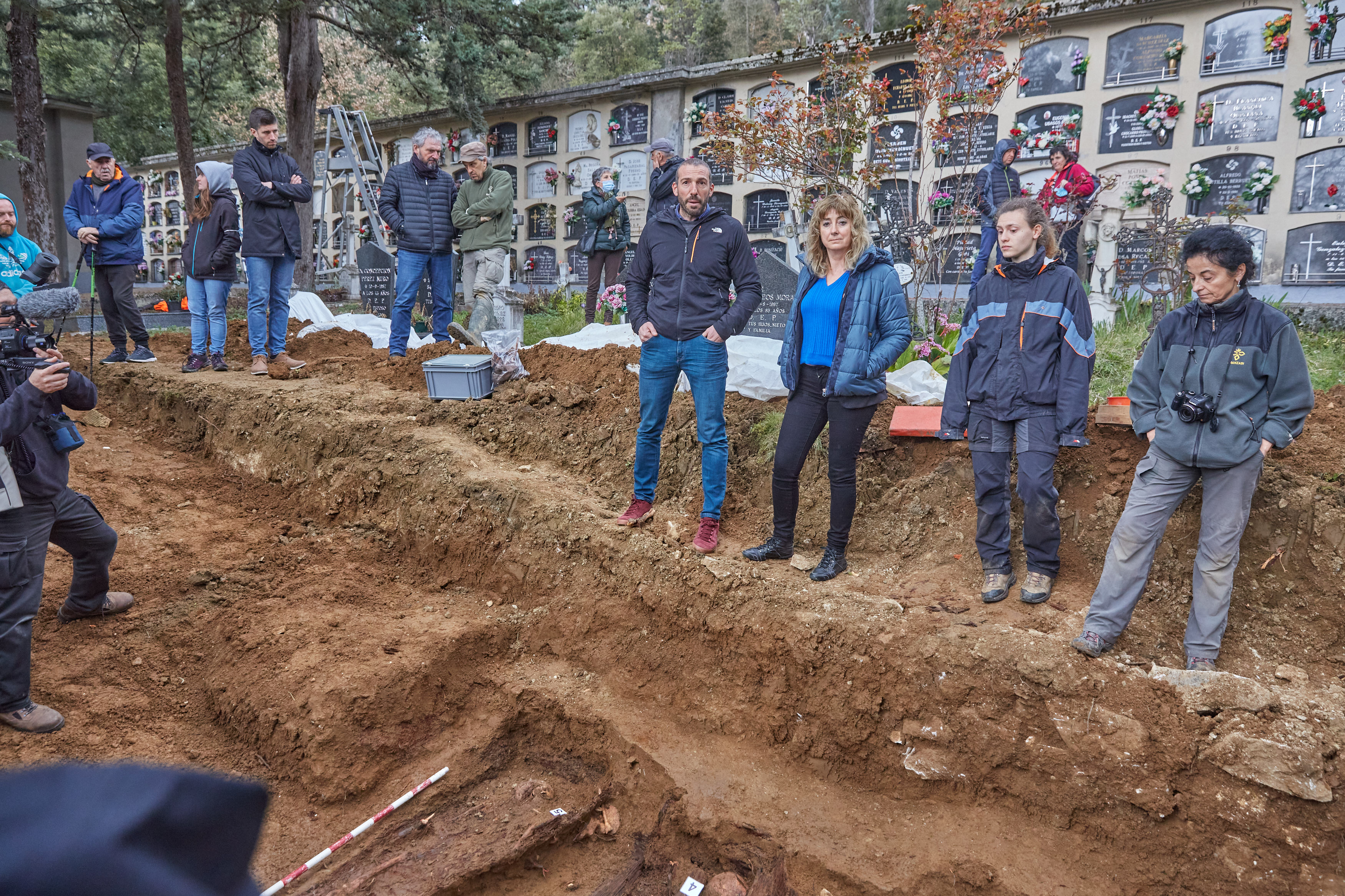 La consejera de Relaciones Ciudadanas del Gobierno de Navarra, Ana Ollo, acompañada de Martín Zabalza, Director General de Paz, Convivencia y Derechos Humanos y de Josemi Gastón, director del Instituto Navarro de la Memoria, ha visitado el cementerio de Berriozar, donde se está llevando a cabo la exhumación de los restos de cuatro personas que, según todos los indicios, podrían corresponder a presos del penal del Fuerte San Cristóbal, en el monte Ezkaba.
