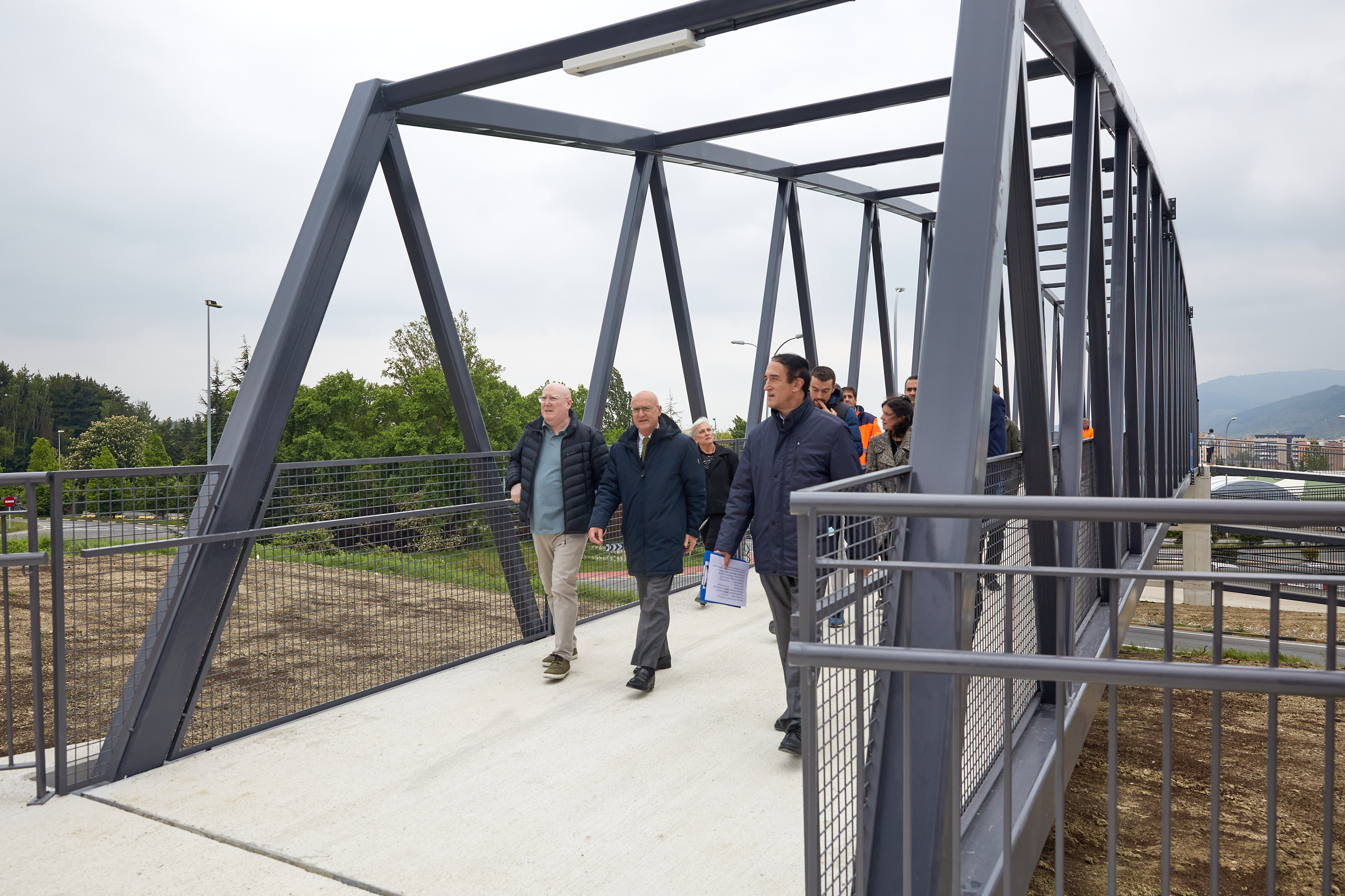 La nueva pasarela de Huarte / Uharte conecta desde hoy la zona residencial de Itaroa con el área comercial. El consejero de Cohesión Territorial, Bernardo Ciriza, y el alcalde de Huarte, Alfredo Arruiz, han visitado la nueva infraestructura que ha supuesto una inversión de 643.781,54 euros (IVA incluido).