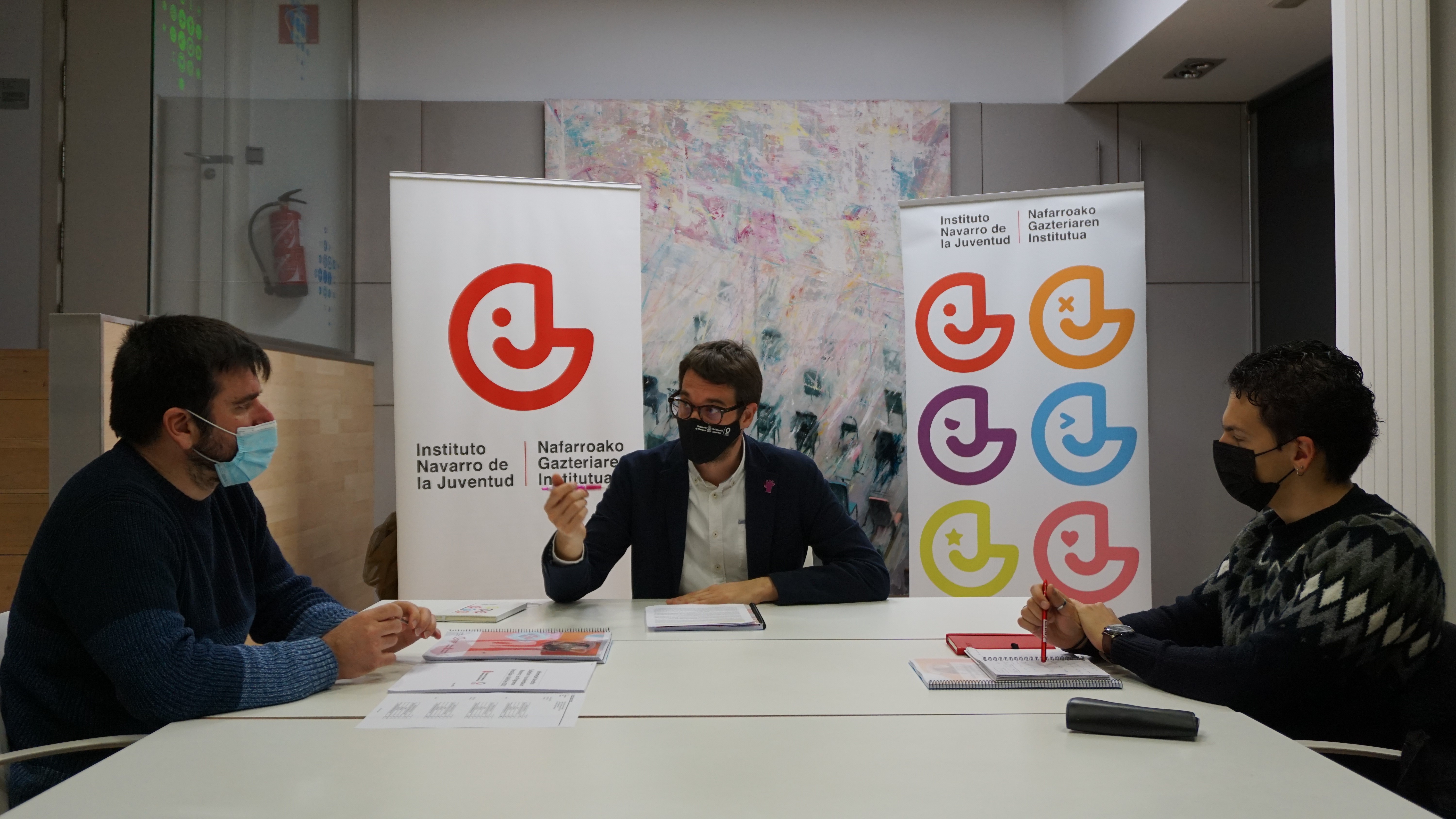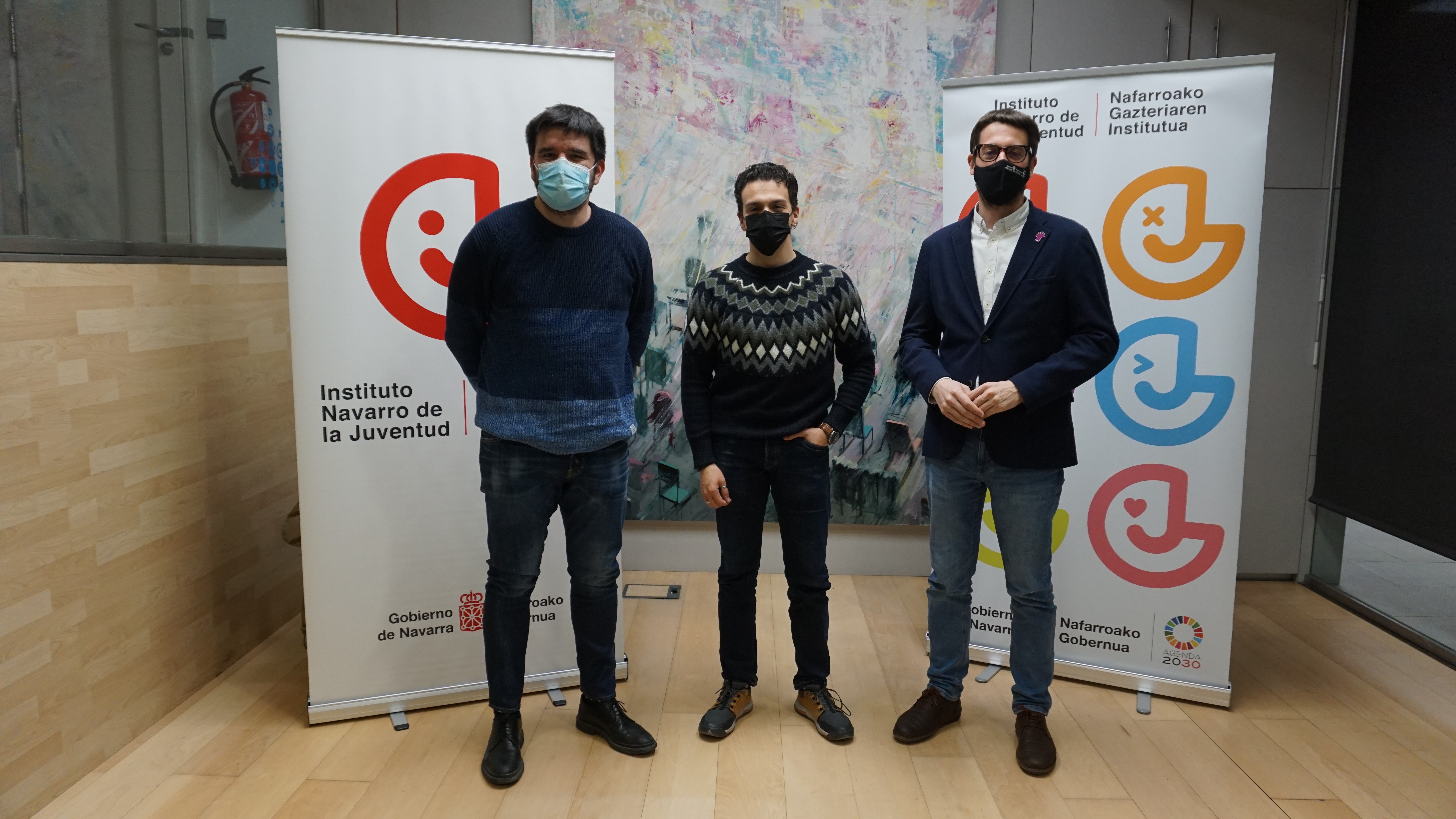El director gerente del Instituto Navarro de la Juventud y el director general de Vivienda del Gobierno foral, Carlos Amatriain y Eneko Larrarte, han mantenido hoy un encuentro con el recientemente elegido presidente del Consejo Navarro de la Juventud, Guillermo Bergantinos, para contrastar los datos de esta encuesta y las medidas de apoyo a la vivienda de alquiler destinada a personas jóvenes que ha activado el Ejecutivo, así como para recibir aportaciones y propuestas del órgano de representación juvenil en esta materia.