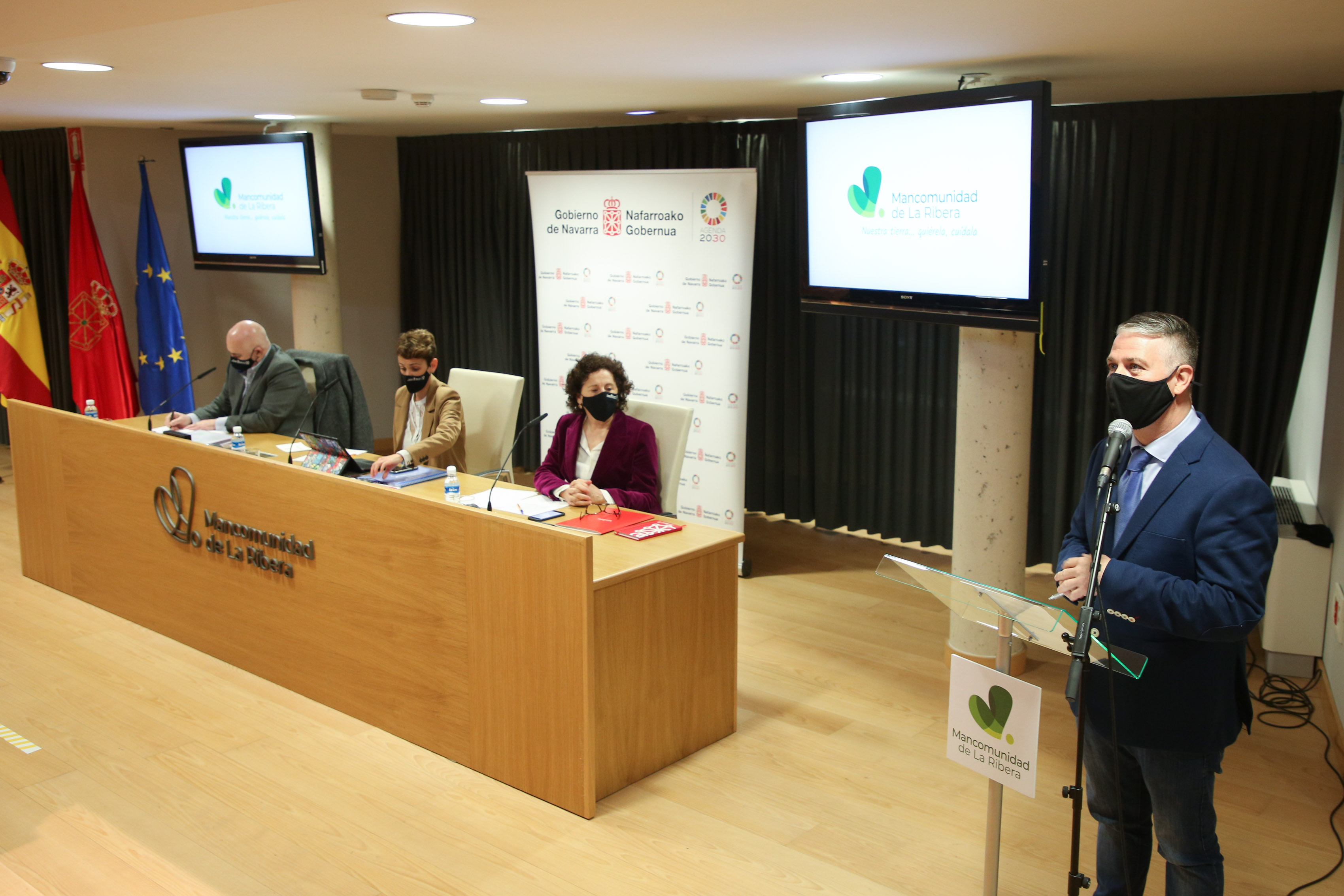 En el encuentro, celebrado en la sede de la Mancomunidad de la Ribera, han intervenido también el vicepresidente segundo y consejero de Ordenación del Territorio, Vivienda, Paisaje y Proyectos Estratégicos, José Mª Aierdi, y la consejera de Derechos Sociales, Carmen Maeztu, los representantes municipales de la zona, así como presidentes de otras entidades locales supramunicipales.