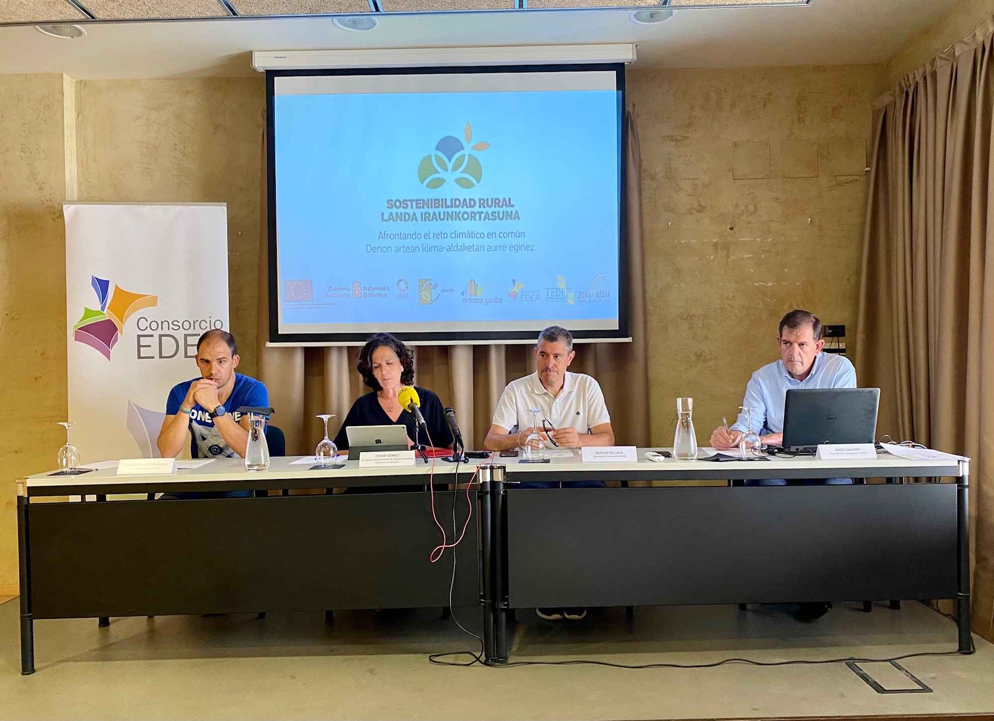 El Consorcio EDER, el Grupo de Acción Local de la Zona Media, TEDER y CEDERNA GARALUR han presentado esta mañana un proyecto de sostenibilidad rural con el reto de afrontar el cambio climático en el centro de sus objetivos y en el que el fin principal es acompañar a las entidades locales en el planeamiento y ejecución de las acciones orientadas a la adaptación y mitigación del cambio climático.