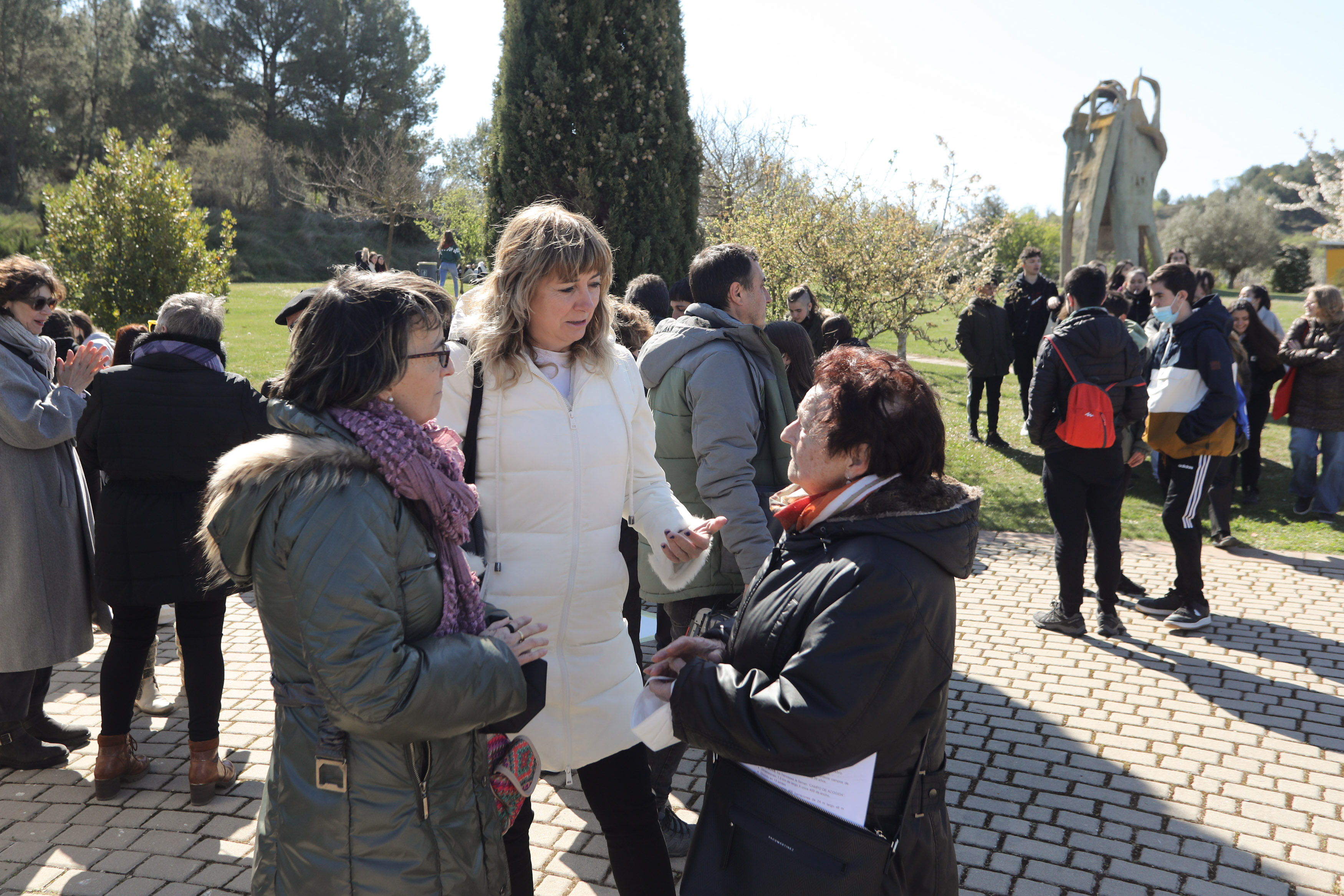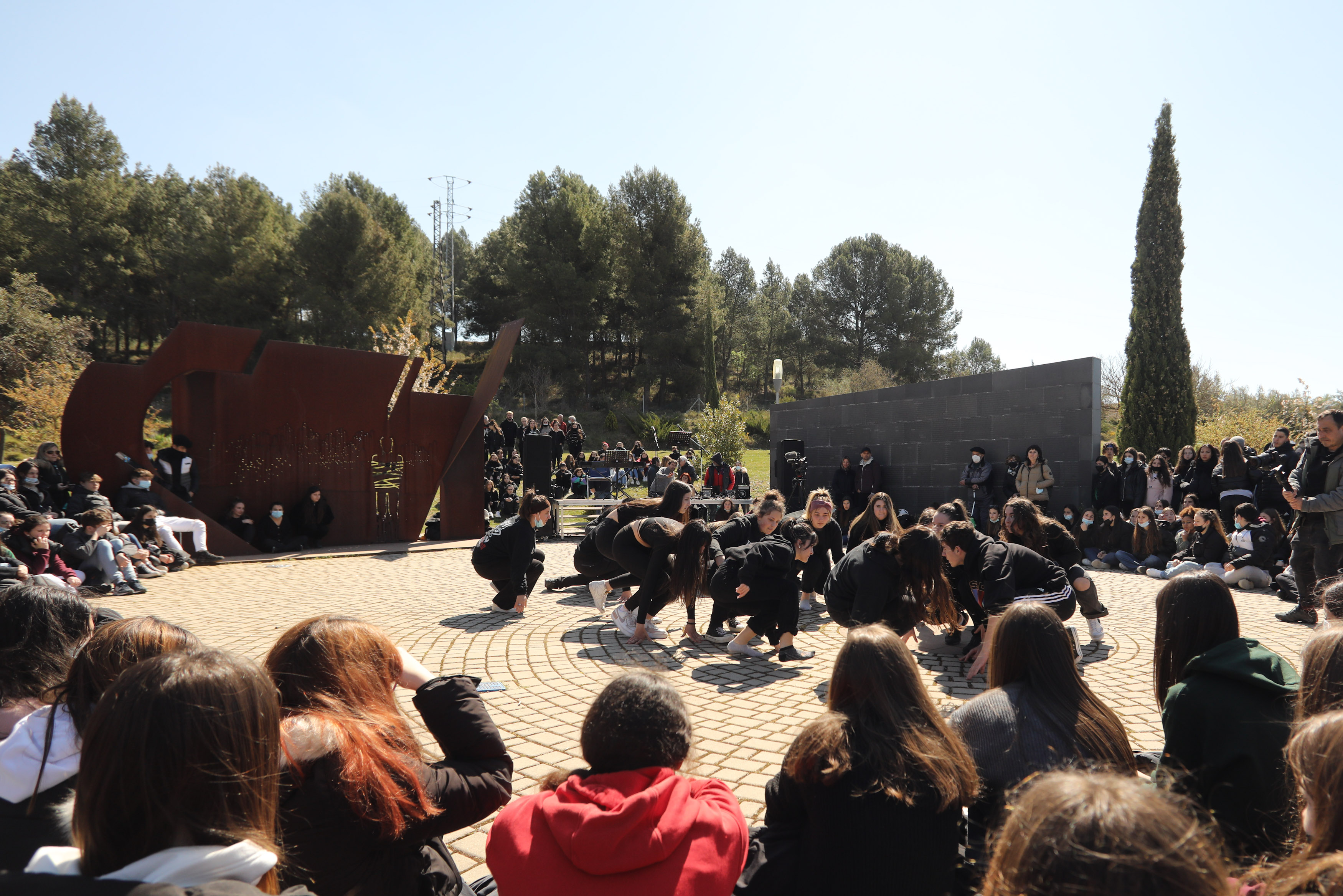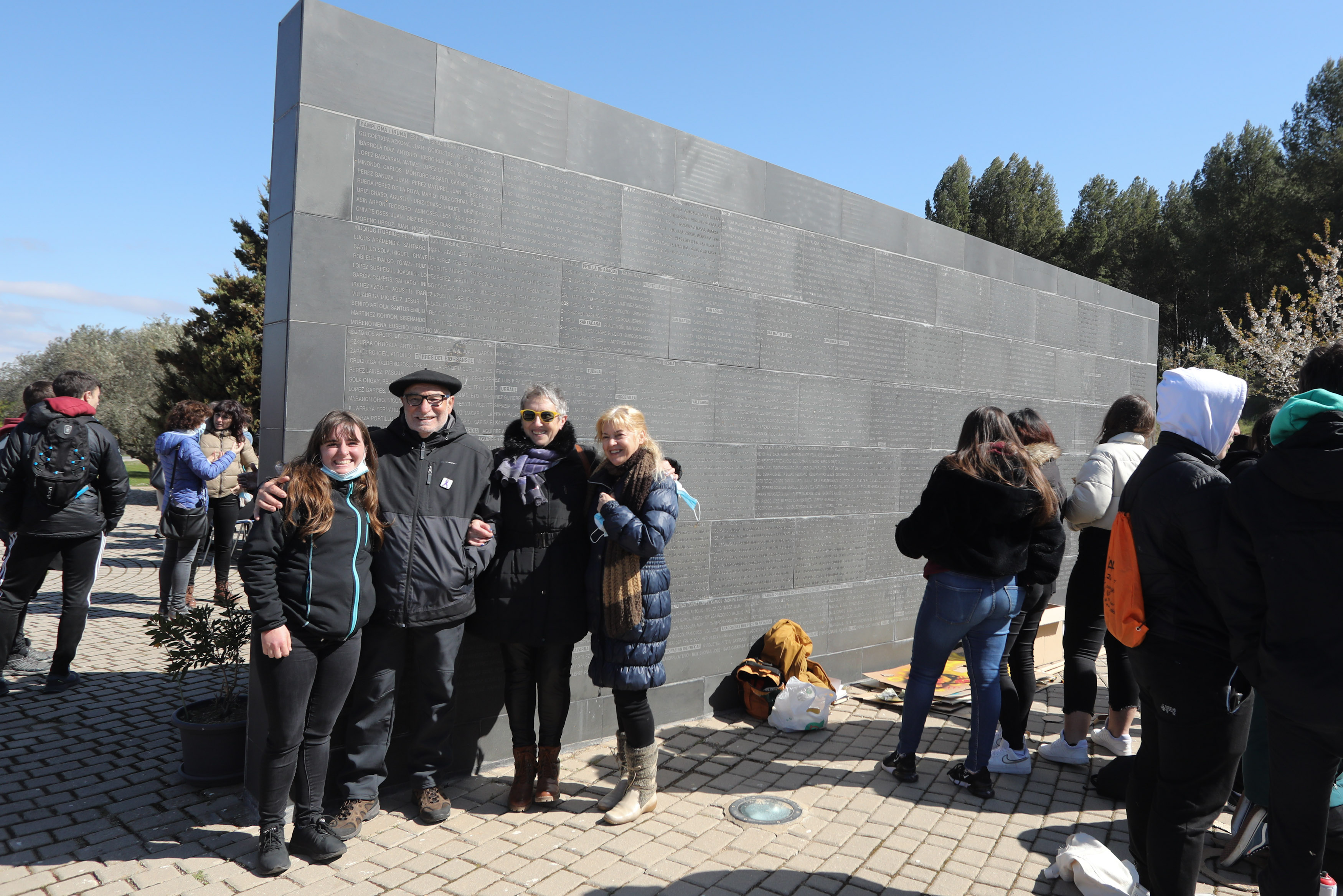 Más de 500 alumnos y alumnas de los institutos Iparralde y Mendillori de Pamplona / Iruña, Askatasuna de Burlada / Burlata, Alaitz de Barañáin / Barañain y Tierra Estella se han encontrado con una docena de familiares en este emblemático Lugar de la Memoria de Navarra.