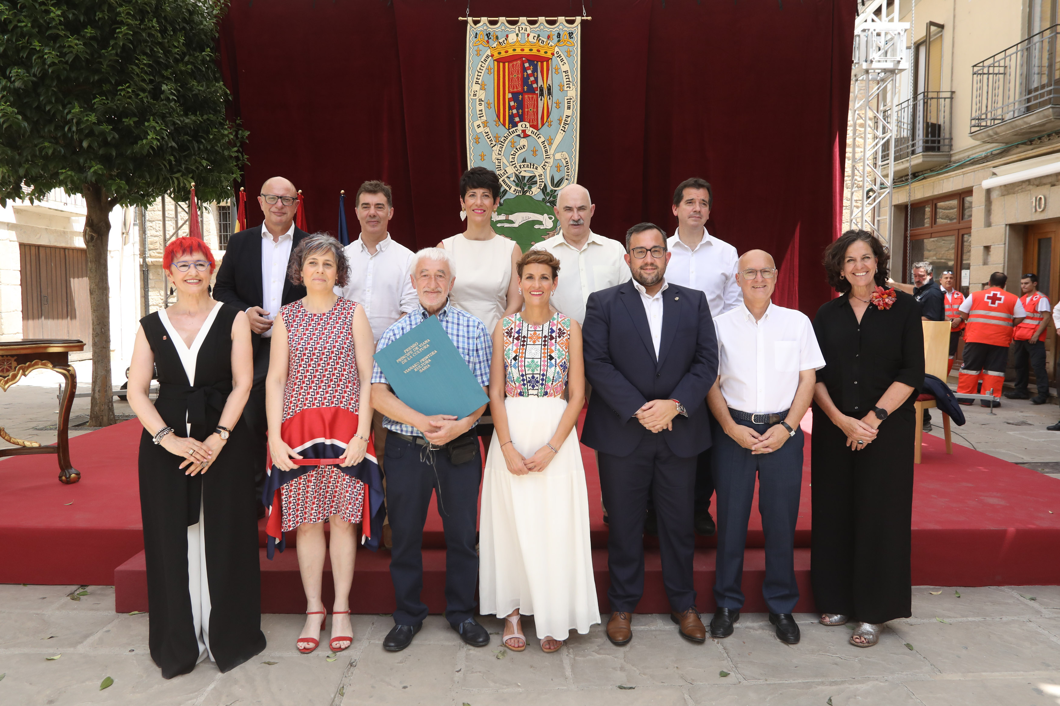 El acto se ha celebrado al aire libre en la Plaza de los Arcos de Sangüesa. Además de la Presidenta Chivite, han asistido el presidente del Parlamento de Navarra, Unai Hualde; el delegado del Gobierno en Navarra, José Luis Arasti; la consejera de Cultura y Deporte, Rebeca Esnaola; y otros consejeros y consejeras del Gobierno de Navarra.
