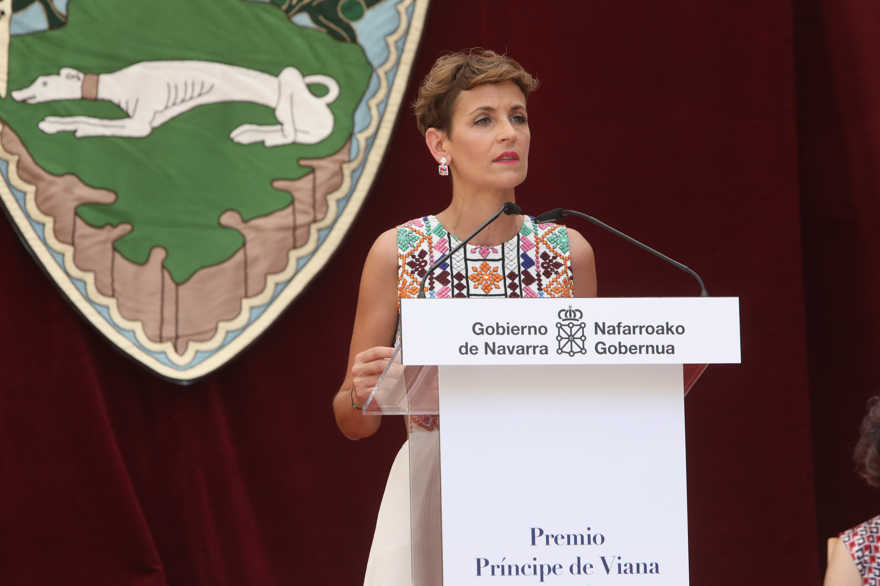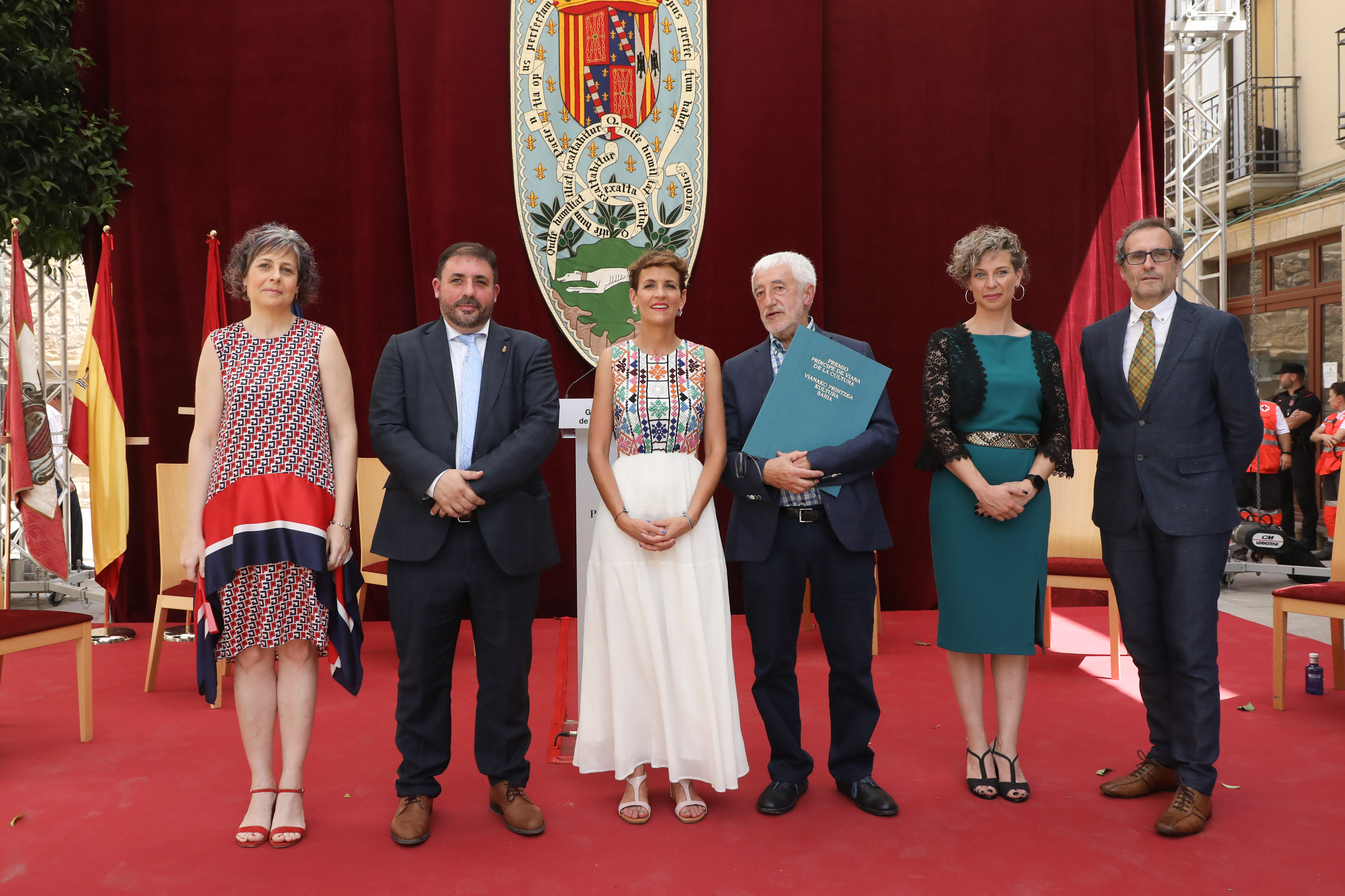 Durante el acto, que ha tenido lugar en la Plaza del General los Arcos de Sangüesa / Zangoza, la Presidenta ha destacado también que “ha iluminado de color valles, montañas, pueblos y ríos. En su obra intuimos una Navarra esquemática, pero reconocible”. En este sentido, ha apuntado que la naturaleza “transita a un ritmo que no es el humano” y, por eso, “retratarla es pintar el tiempo”.