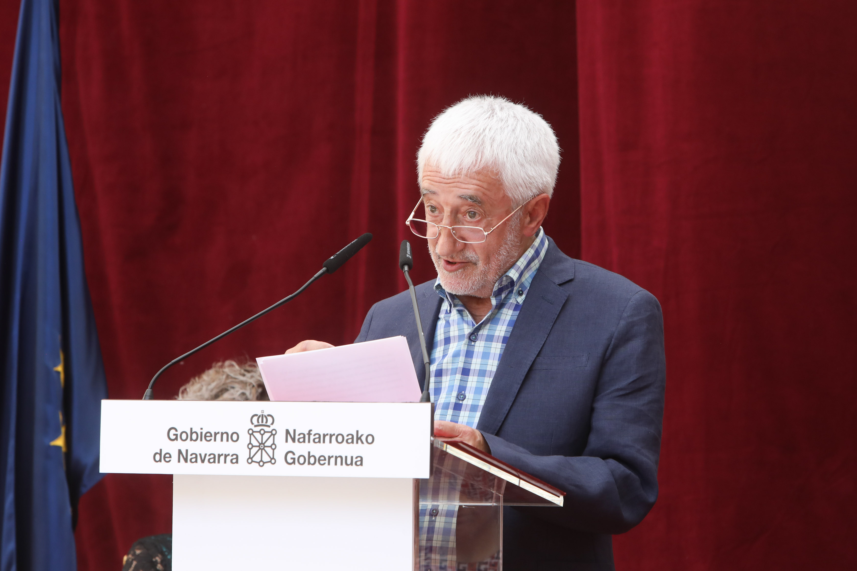 Antes de la entrega del galardón, ha tomado la palabra Javier Balda, pintor y diseñador gráfico, y miembro del Consejo Navarro de la Cultura y de las Artes que defendió la candidatura del premiado.