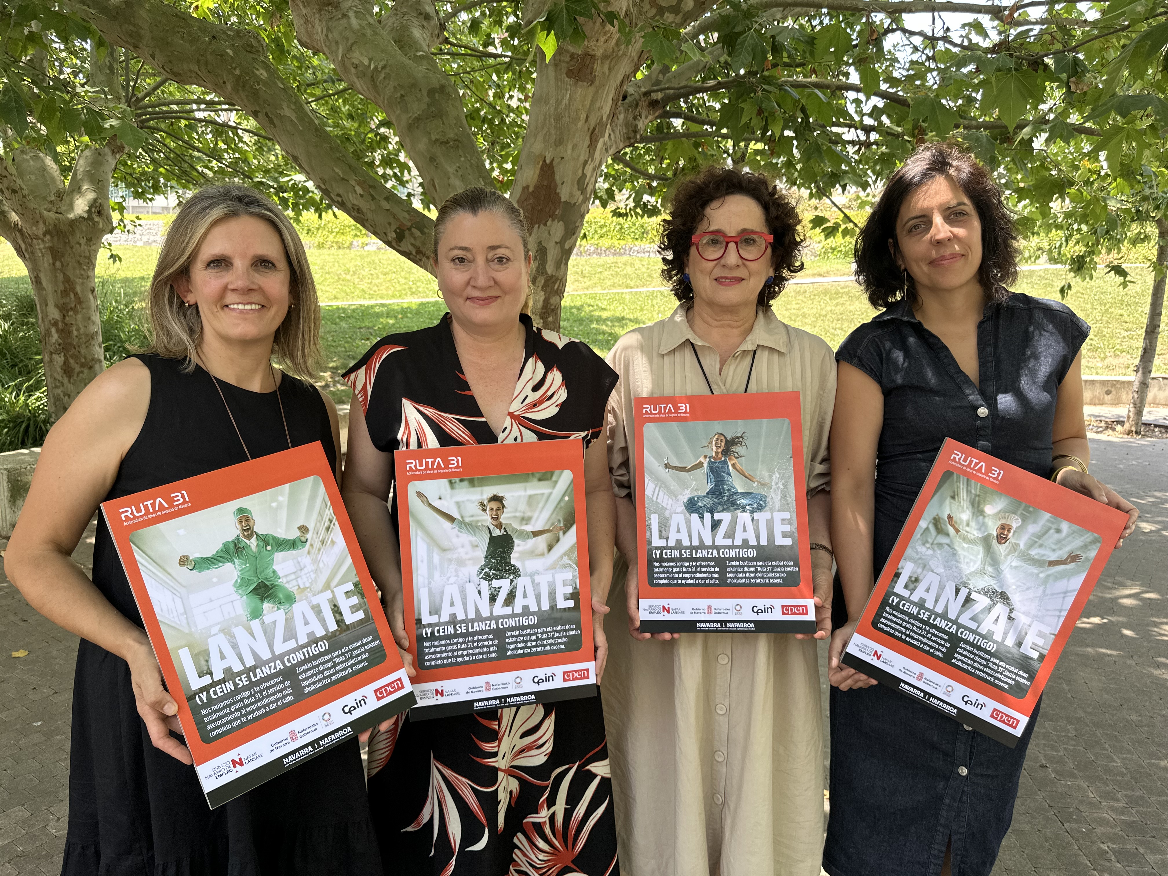 La consejera de Derechos Sociales, Economía Social y Empleo, Carmen Maeztu, la directora gerente del Servicio Navarro de Empleo (SNE-NL), Miriam Martón y la directora gerente del Centro Europeo de Empresas e Innovación de Navarra (CEIN), Uxue Itoiz, han presentado esta mañana la campaña “Lánzate (y CEIN se lanza contigo)” con el objetivo de promocionar Ruta 31, el servicio de asesoramiento para personas emprendedoras de la sociedad pública, financiado por el Servicio Navarro de Empleo-Nafar Lansare.