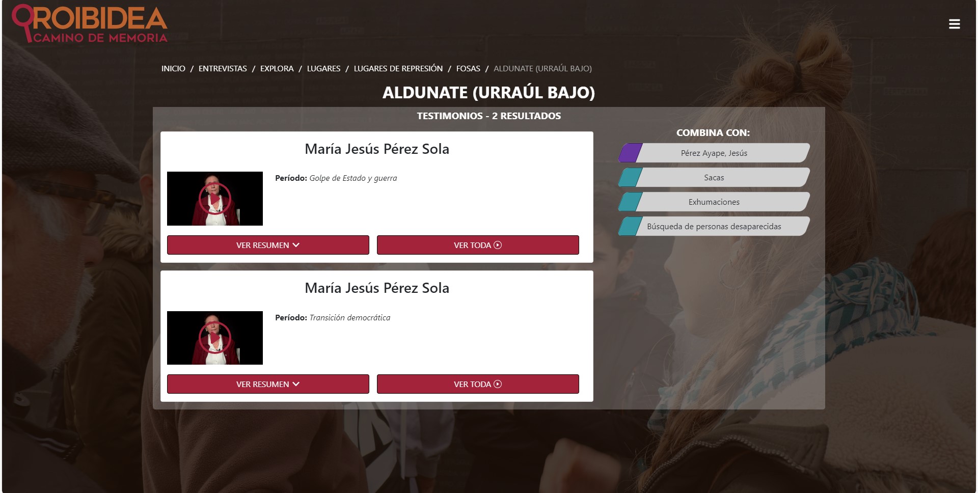 El archivo digital ‘Oroibidea’, además de permitir búsquedas por personas o localidades como hasta ahora, también permite hacerlo por lugares de represión. En él se han incorporado 244 fosas, 127 prisiones, 20 campos de concentración y 45 batallones de trabajadores forzados. En cada uno de estos lugares se relacionan todas las víctimas que hay constancia de que pasaron por ellos, un total de 16.369.