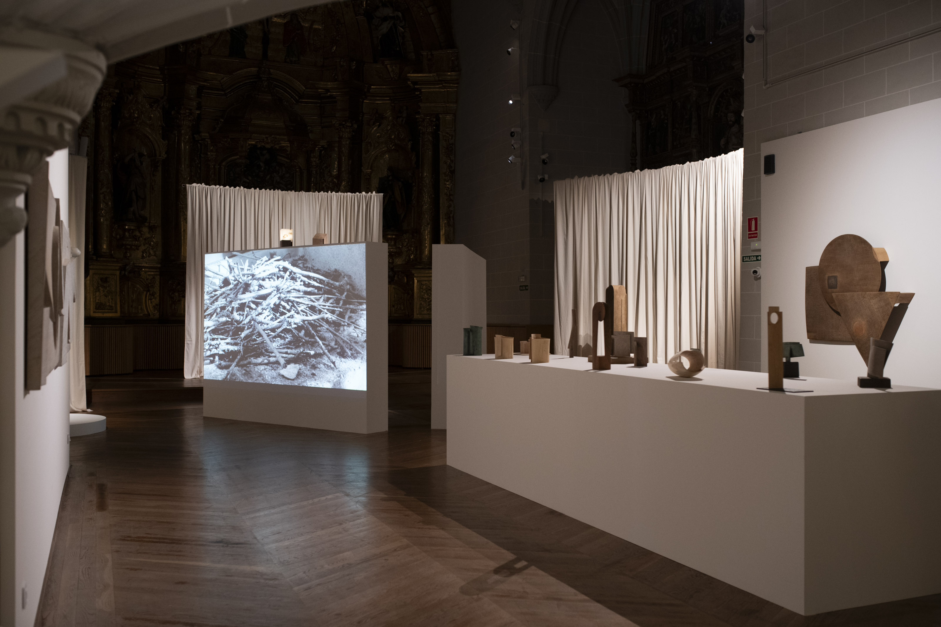 Así, José Ramón Anda presenta materiales como madera, mármol, bronce y alabastro en esculturas que adoptan la verticalidad como muchas de las imágenes y grandes candelabros que vemos en un templo. Se incluyen también otros elementos horizontales como mesa, banco o relieves, dándoles interpretación y sentido nuevos, en un ambiente oscuro o con la luz atenuada.