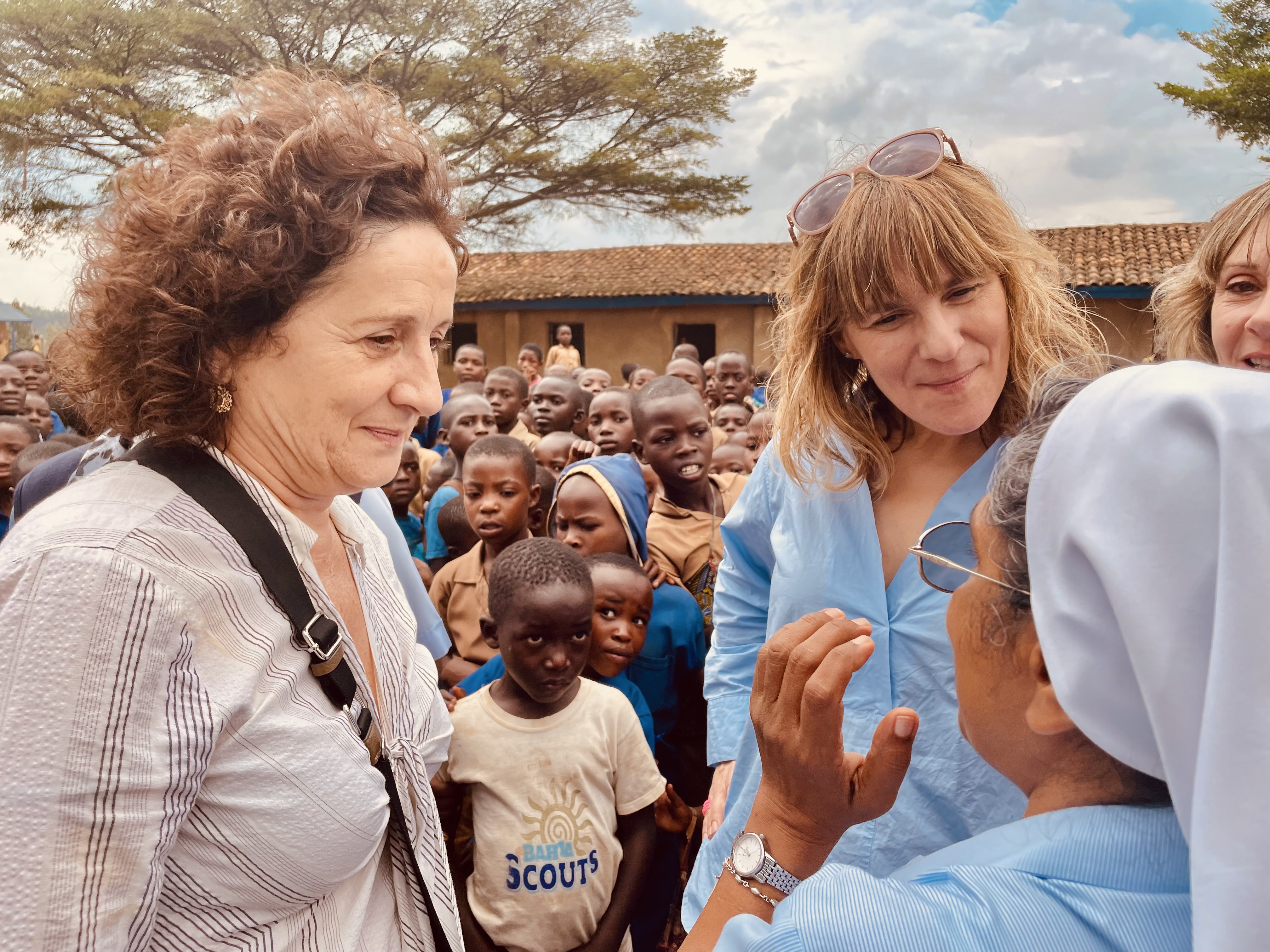 La delegación navarra encabezada por la consejera de Derechos Sociales, Economía Social y Empleo, Carmen Maeztu, la directora de Protección social y Cooperación al Desarrollo, Inés Jimenez, y Marta Mañeru en representación de la coordinadora de ONGs de Navarra de visita a proyectos de cooperación en Ruanda, han conocido el proyecto de mejora educativa que las Hermanas de la Caridad de Santa Ana a través de la Fundación Juan Bonal desarrollan para el distrito de Kamonyi, a 43,5 kilómetros al sur de la capital, Kigali y con una población de 45.000 habitantes.