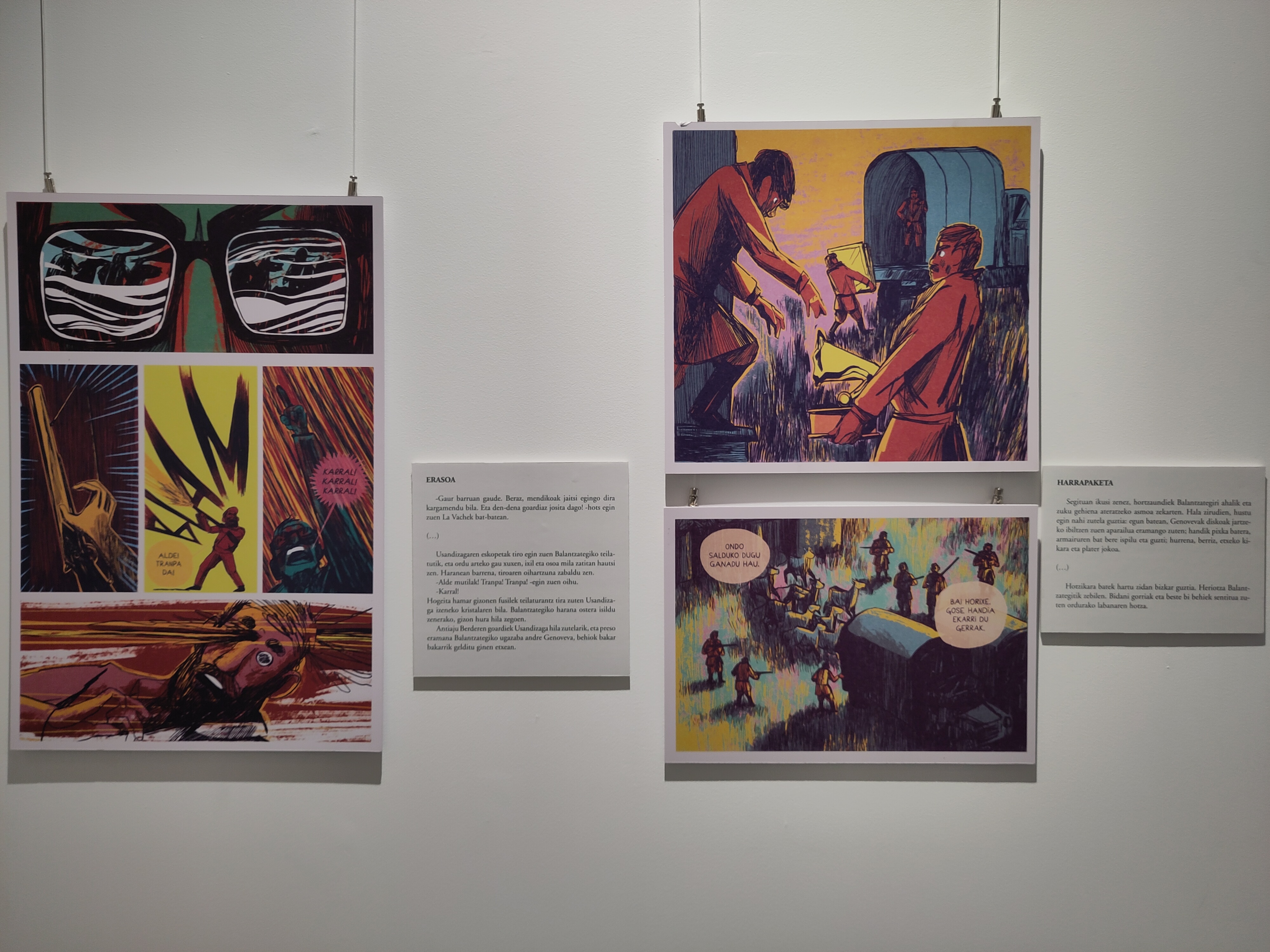 Entre las exposiciones, hasta el 10 de mayo se podrá ver en la Sala de Exposiciones ‘Mo’ Erakusketa, sobre la novela gráfica ‘Mo’, de Pello Varela y Juan Suarez basada en ‘Memorias de una vaca’ de Bernardo Atxaga.