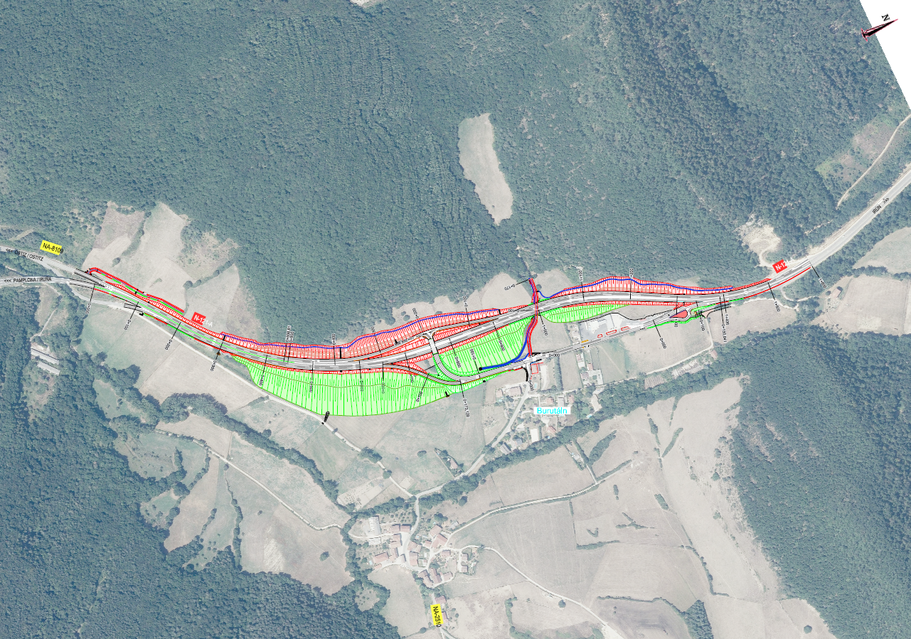 Finalmente, se procederá a la rehabilitación de 272 metros de longitud del firme de la actual N-121-A, se construirán una nueva acera y dos paradas de bus en el cruce de Burutain y se mejorará la intersección en la carretera NA-8109.