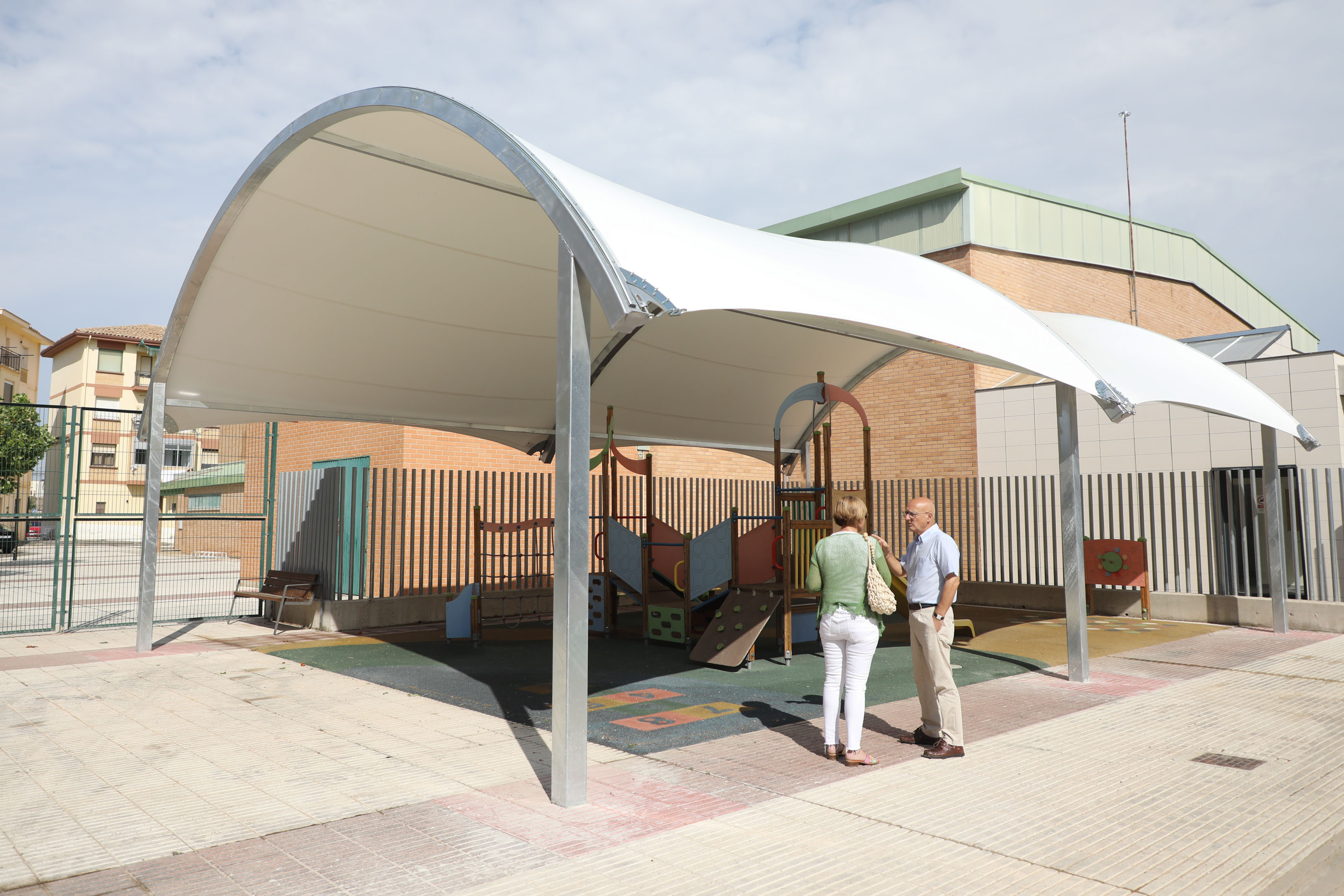 Esta actuación es fruto de un convenio de colaboración firmado este año entre el Gobierno de Navarra y el Ayuntamiento de la localidad, con el fin de implantar una cubierta textil sobre la zona de juegos infantiles situada en el patio del colegio público.